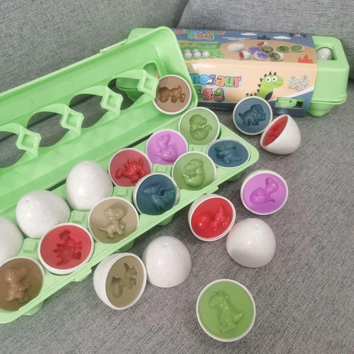 12 dinosaur eggs come in different shapes that help baby develops important skills including child's intelligence development, finger dexterity, fine motor skills, and color and shape recognition.