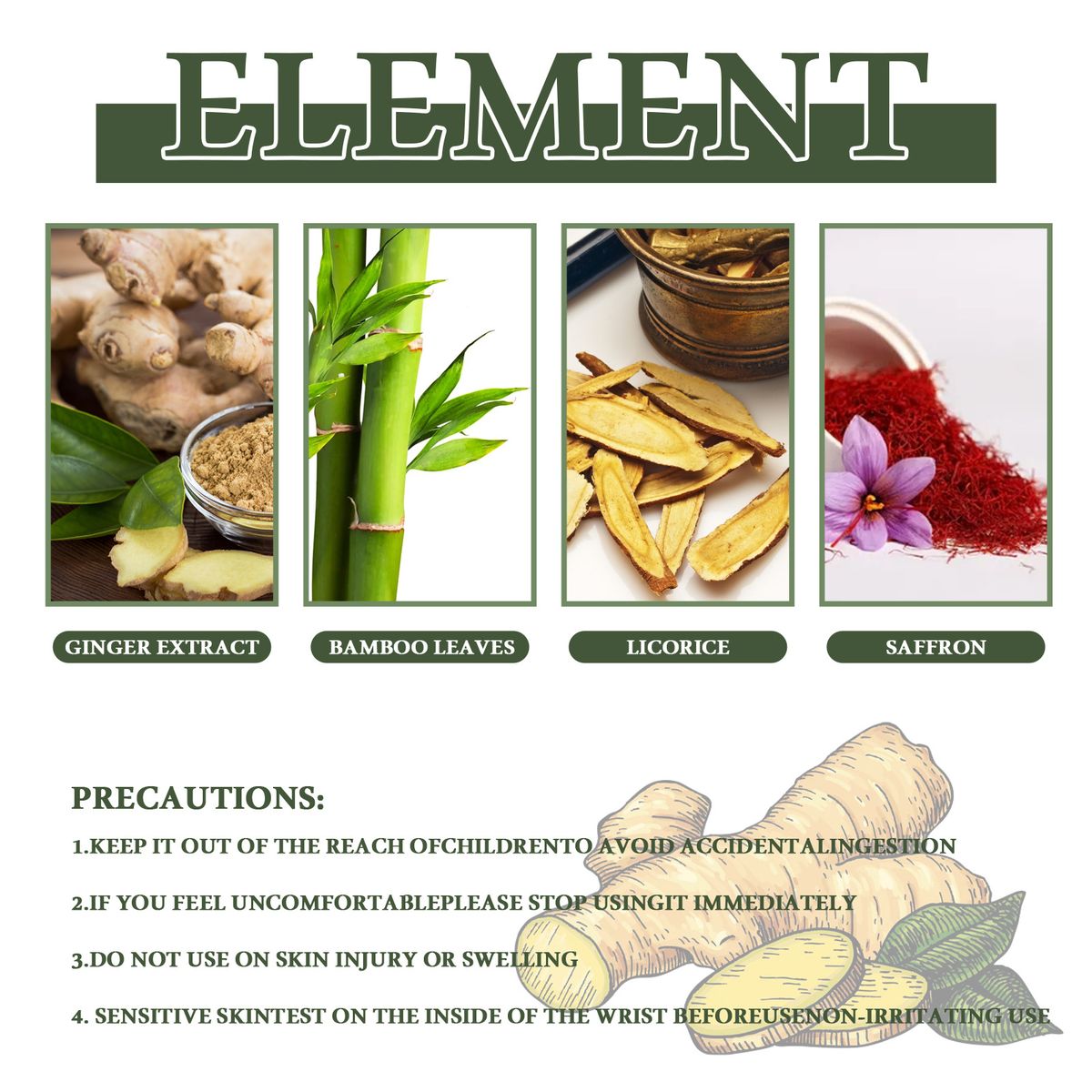 Blending with ginger root extracts, it reduces swelling and soothes pain with its warming and anti-inflammatory properties.