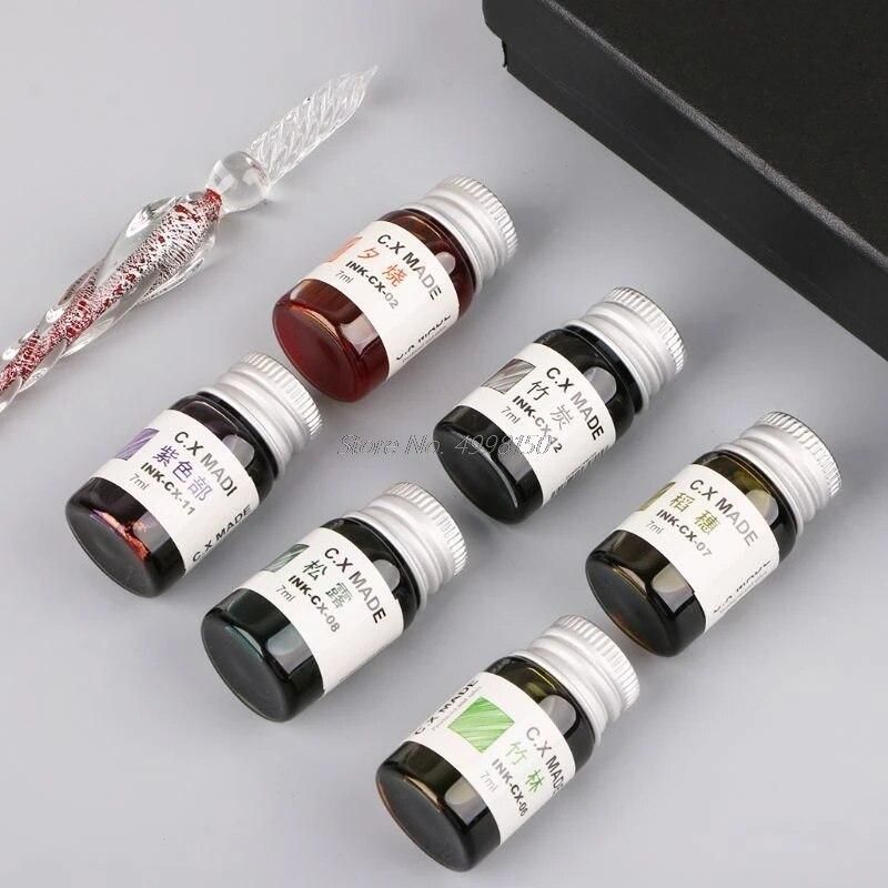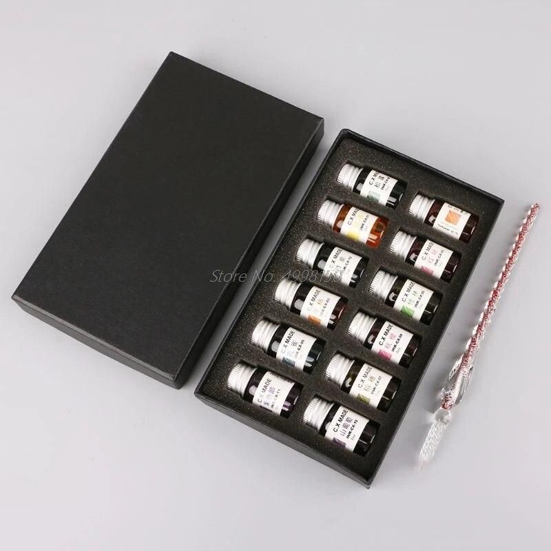 Buy 12pcs Gold Powder Colored Bottled Glass Dip Pen Ink Set Fountain Writing Signature Box Gift 7ML Dropship in Nigeria