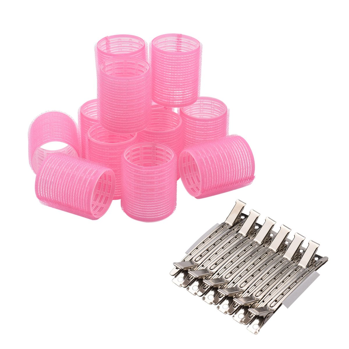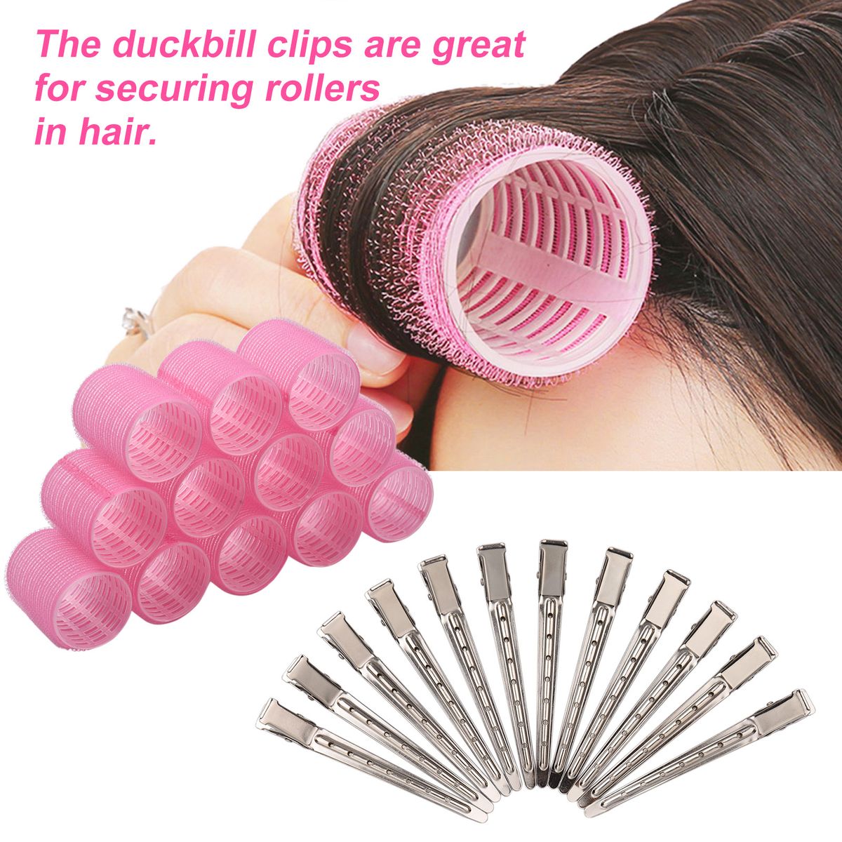 The hair rollers set is included 12pcs hair rollers and 12pcs stainless steel duckbill clips. They are suitable for all hair types, and they can stay in your hair on their own without hairpins.