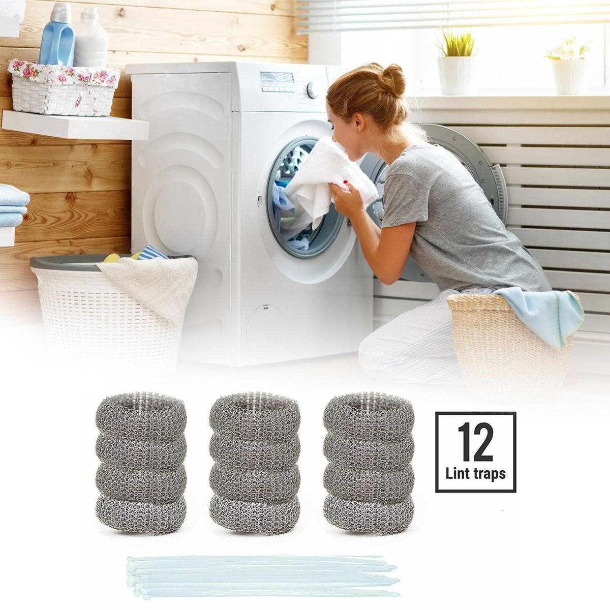 Buy 12Pcs Lint Traps with 12 Ties Attach to Washer Sink Hose Stainless Steel Lint Catcher From Clogging in Nigeria