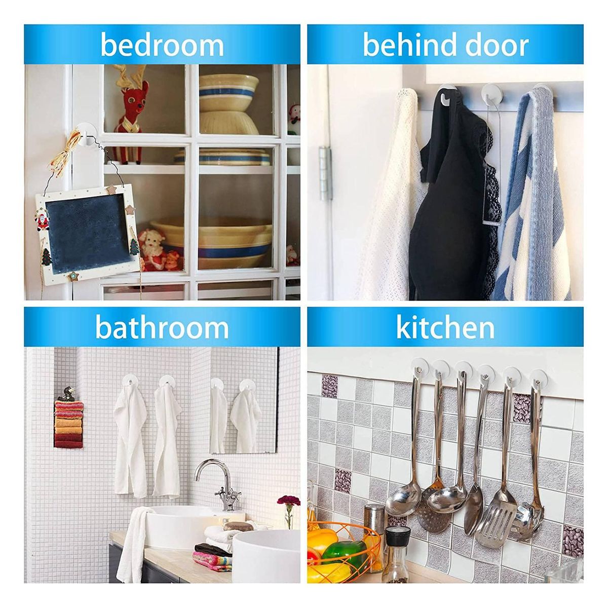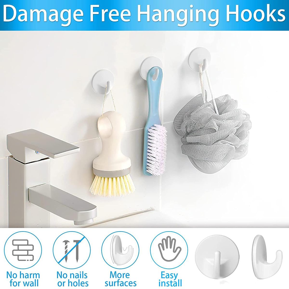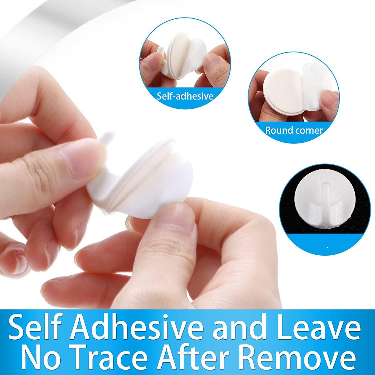 [12 PCS STICKY HOOKS SET] includes 12pcs white self adhesive hooks(diameter 3.3cm/1.3in, thickness 2cm/0.8in). Enough quantity sticky hooks can meet your daily needs for hanging some small objects.