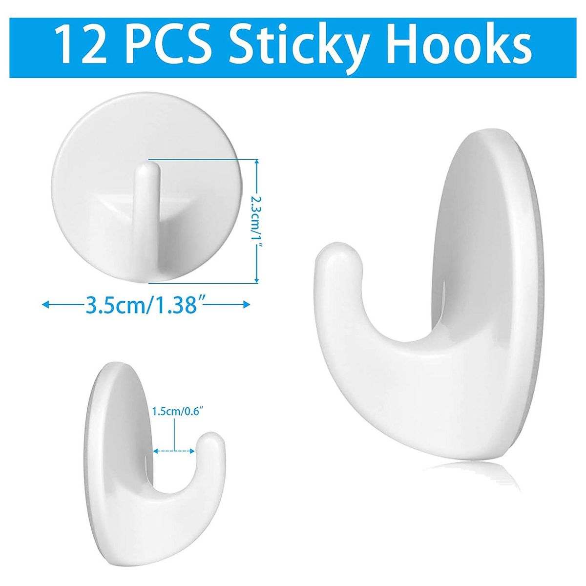 Detailed Information About The Product:[12 PCS STICKY HOOKS SET] includes 12pcs white self adhesive hooks(diameter 3.3cm/1.3in, thickness 2cm/0.8in). Enough quantity sticky hooks can meet your daily needs for hanging some small objects.