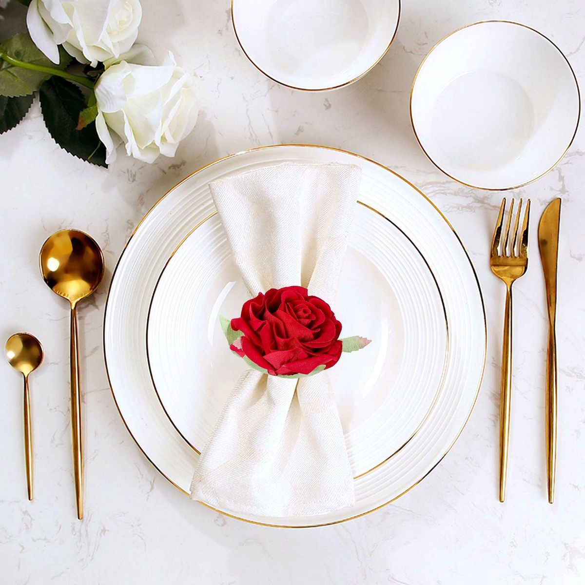 Detailed Information About The Product:1. Metal napkin rings with red in this package, adequate enough for your usage. The nipkin ring is 4cm in diameter with red linen on it, adding and warm atmosphere to your table.