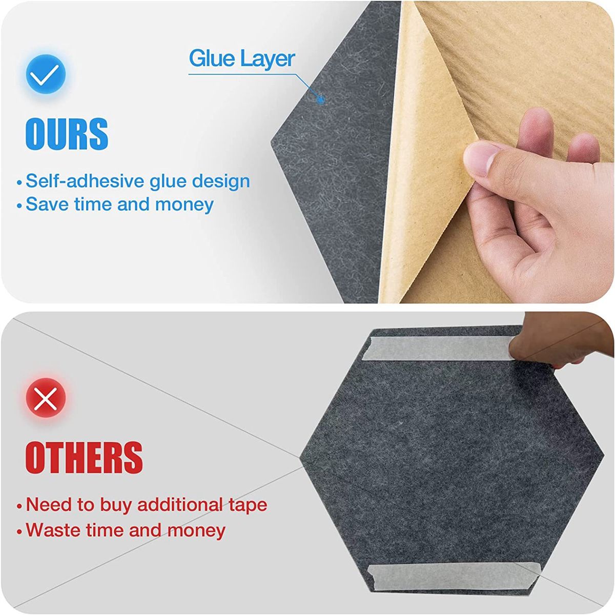 Acoustic panels with self-adhesive designWhen you recive the acoustic foam panels just and stick