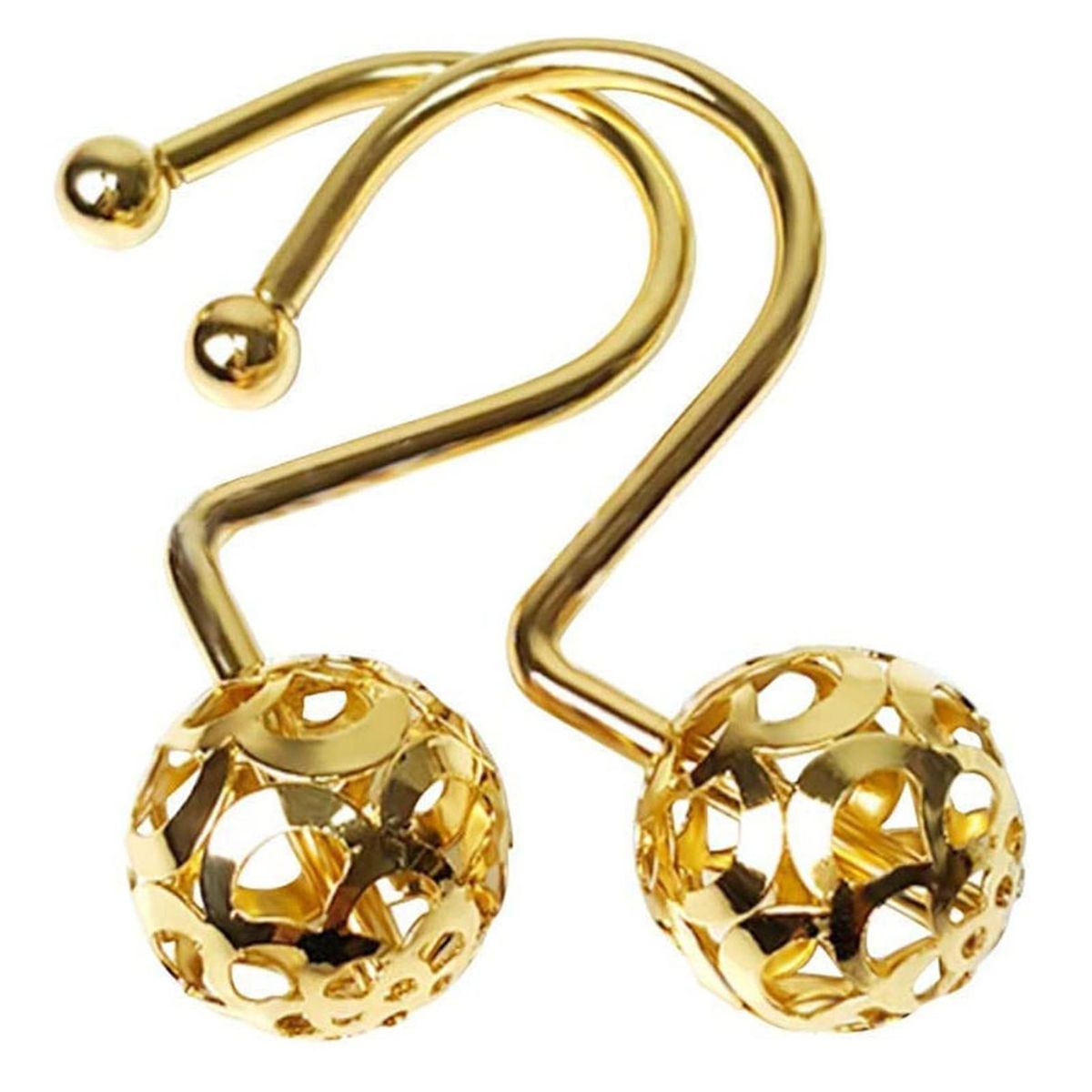 Unique anti-rust iron shower curtain hangers, easily glides on shower curtain rods and tension rods shower hooks for any room bathroom. Very sturdy smooth shining polished material, bright gold color looks elegant and goes great with any curtain containing shades of gold, stylish to match any decor style.