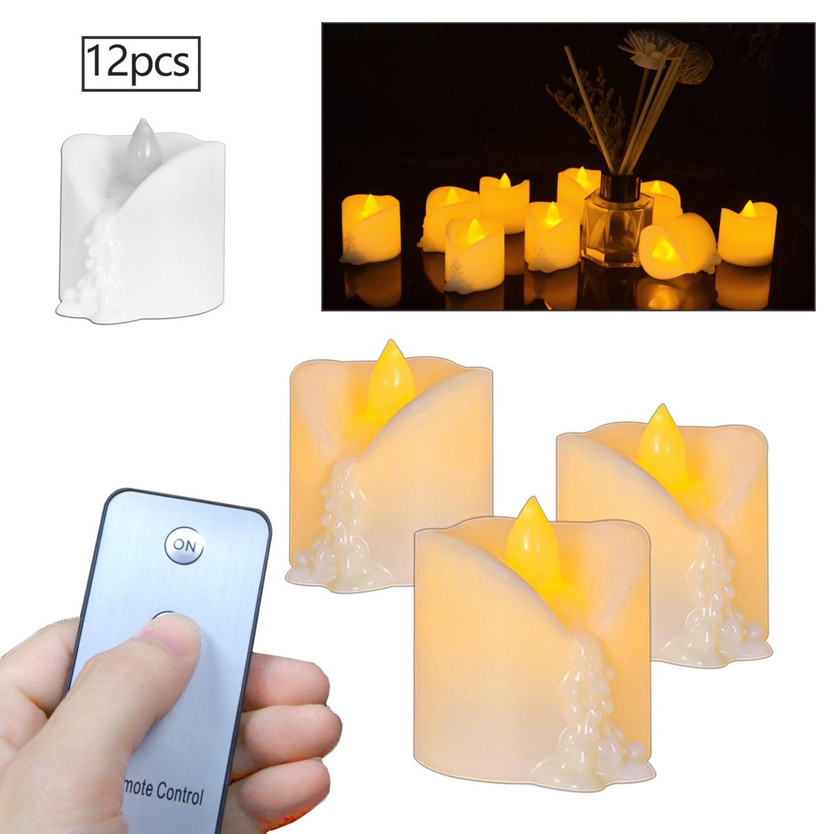 Buy 12Pcs Simulation Melting Tea Wax Candle Lamps Remote Control Christmas Party Decoration Electronic Candle Light (Warm white flashing) in Nigeria