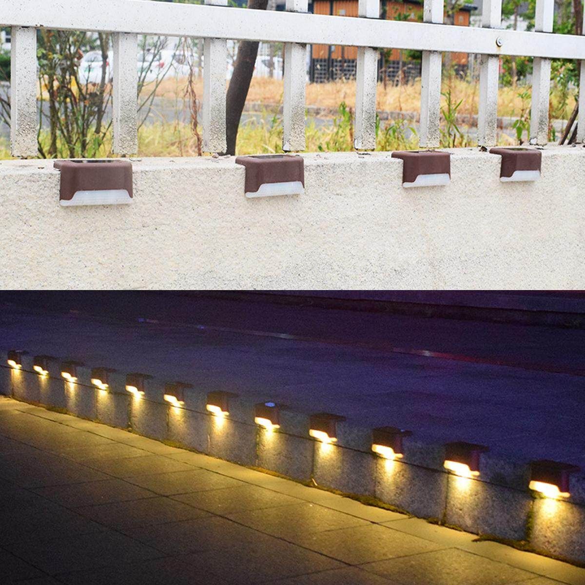 12PCS Solar Powered LED Deck Lights Outdoor Garden Stairs Step Fence Lamp