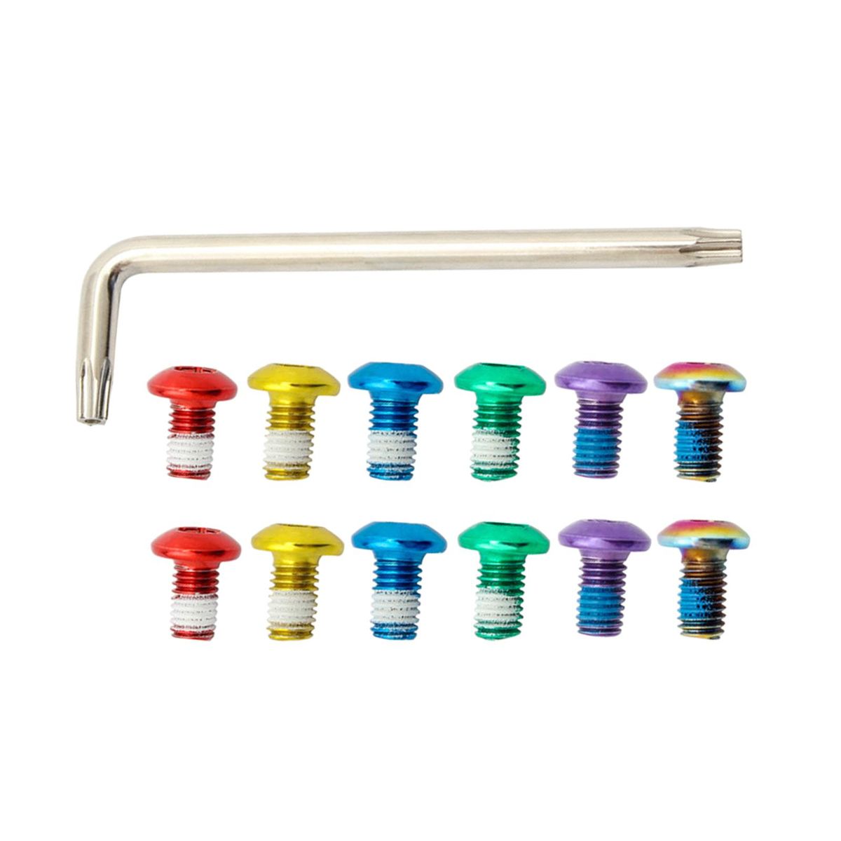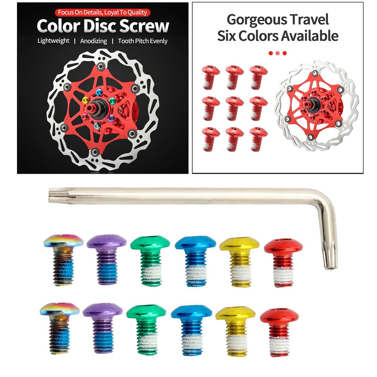 -12 Pieces M5x9mm Disc Brake Rotor Screws made of steel material- high strength, high intensity, strong, lightweight, rust-proof, corrosion-resistant and wear-resistant-Coated with bright color and for tight and perfect biting, practical and decorative to add more details to your bikes.-Standard depth and dimension of screw cross slot, flat and smooth screw section without residual burrs, clear and tidy thread without gap.-Great for bicycle maintenance, screw replacement, missing screw complement.-Keep the disk brake rotor fixed stably, keep your cycling safe.