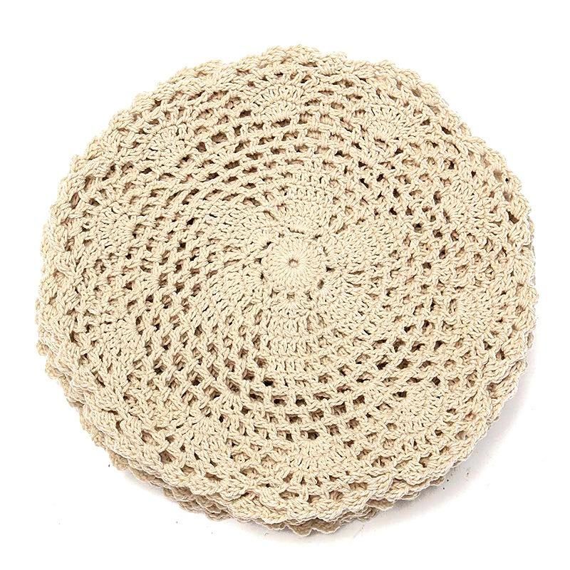 Exquisite hand-crocheted lace doily with a unique floral pattern design and delicate lace edging.