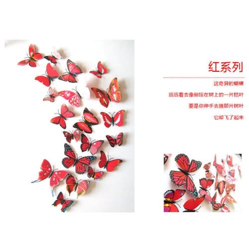 Buy 12pcs Wall Sticker Magnetic Butterflies Diy Home Wall Decor - Red in Nigeria
