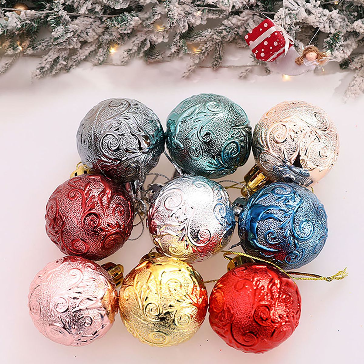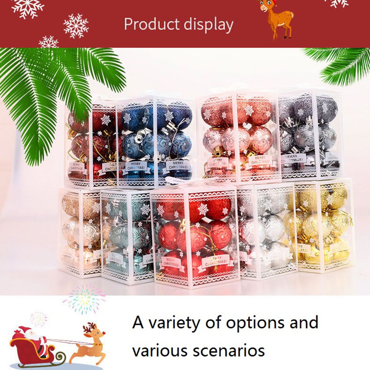Vibrant color makes it eye-catching on the Christmas tree. Christmas theme, glitter powder and glossy ball designs make it add more ambience to your festival.