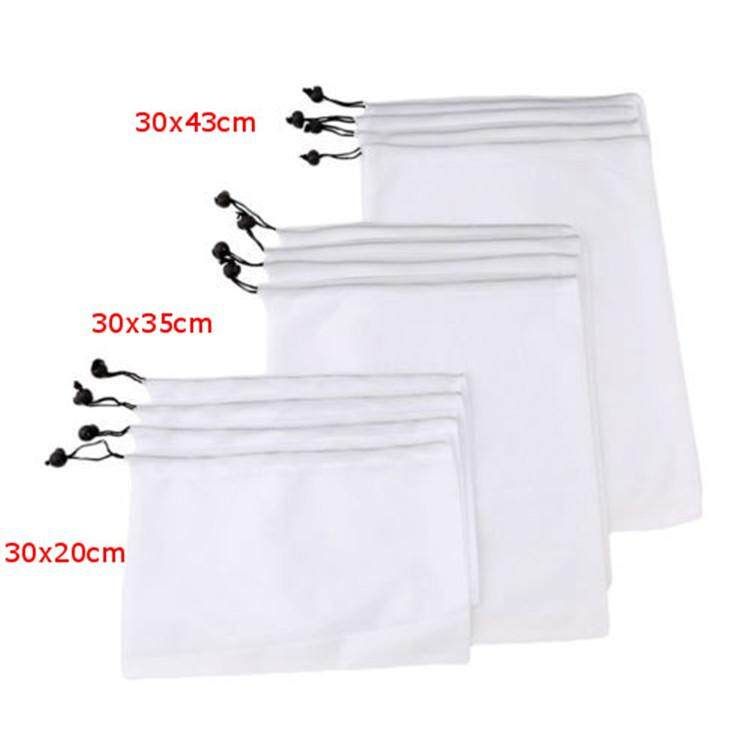 -Our set of 12 mesh bags come in 3 different sizes, They are 4 bags 30x20cm, 4 bags30x35cm and 4 bags 30x43cm big and can be used to store toys or small things you don't want to lose, food, shoes, or clothes.