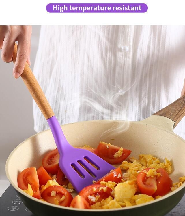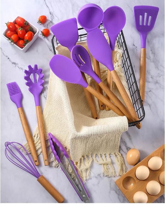 12PCS Silicone Cooking Utensils Set Non-stick Spatula Shovel Wooden Handle Cooking Tools Set With Storage Box Kitchen Tools