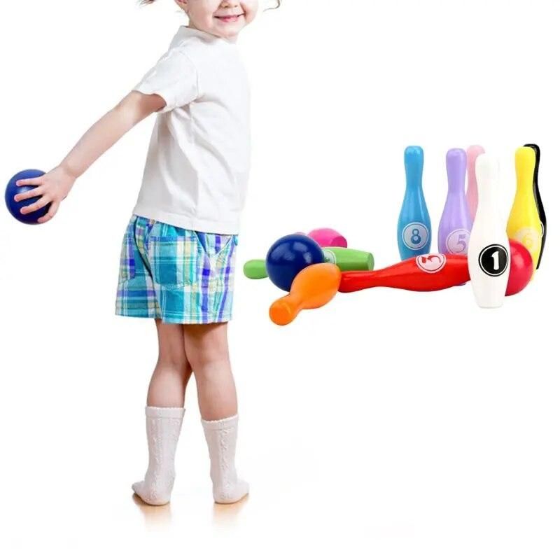 Buy 12pcs/set Wooden Color Bowling Set 10 Pins 2 Ball Bowling Game for Kids Indoor in Nigeria