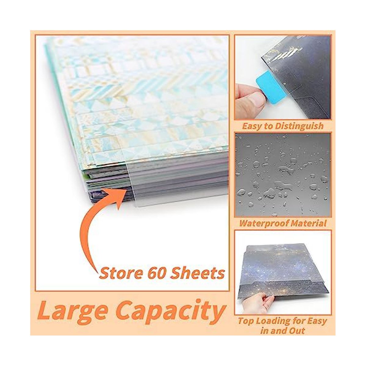 CAPACITY STORAGE BAG - size is 13 x 12.6 inches / 33 x 32 cm, one storage rack can hold 60 sheets of 12 x 12 inches (30.5 x 30.5 cm) scrapbooking paper, help you prevent important from wrinkling or damage .