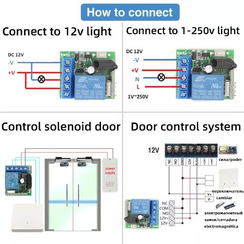 Papackage contains1 x 110~220V 4Channel Switch Receiver (with cover)1 x 4Key Remote Control Transmitter (Included 23A Batteries For Controller)