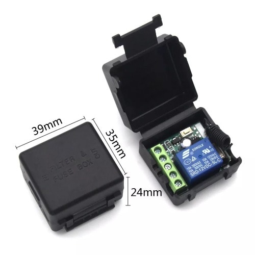 4-channel ReceiverDecode: Learning codeWorking Voltage: 110V~220VOutput way: Momentary/Toggle Latched AdjustableMaximum Load Current: 10ARelay Load:10A 1V-250V 10A/250V AC, 10A/125V AC, 10A/30V DC, 10A/28V DCReceiver Sensitivity: -107dBmWorking temperature : -40\'C - +70\'CSize: 8.8*6*3 CM