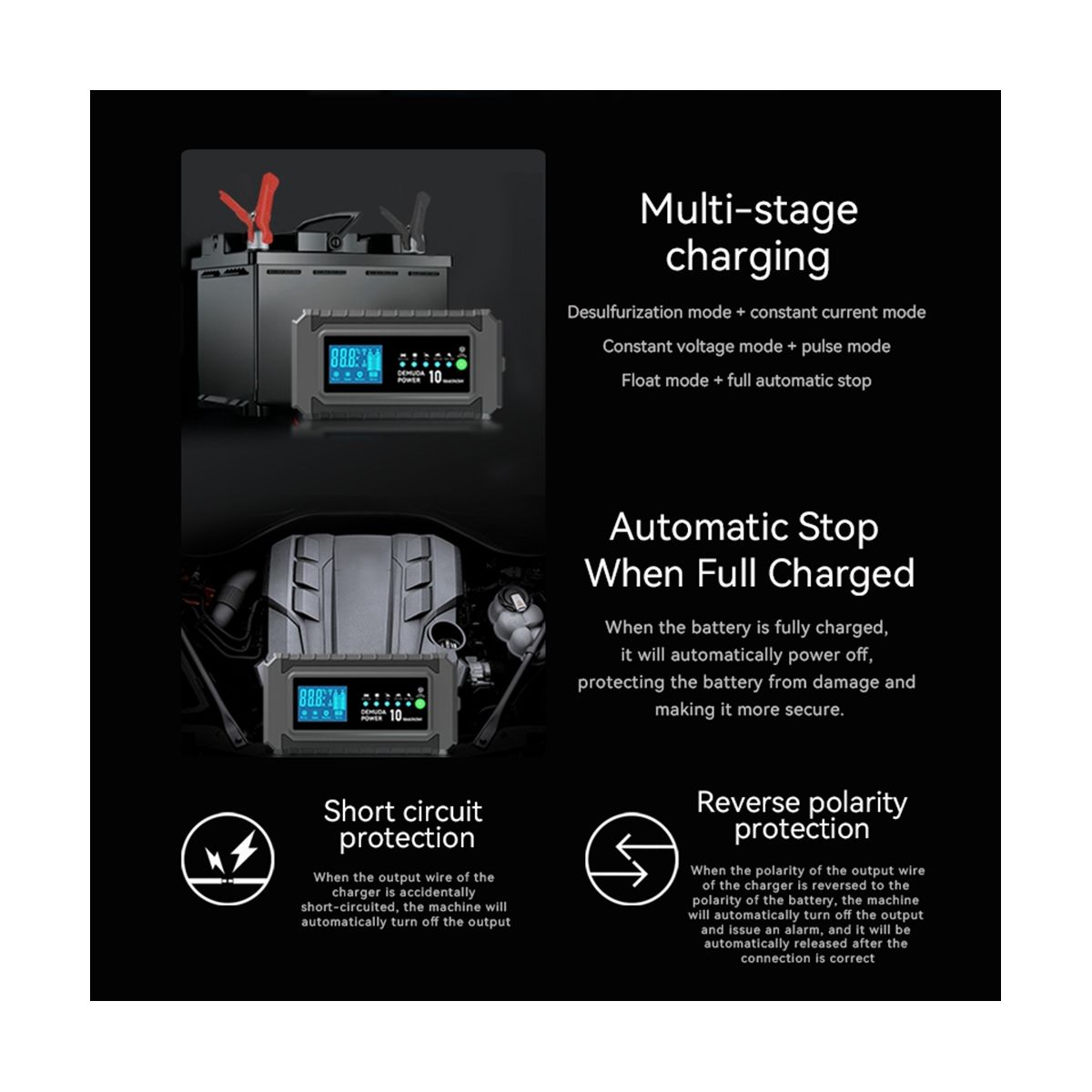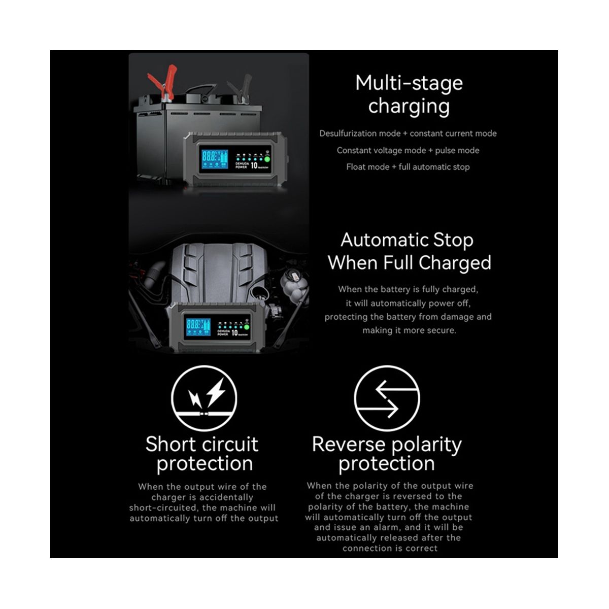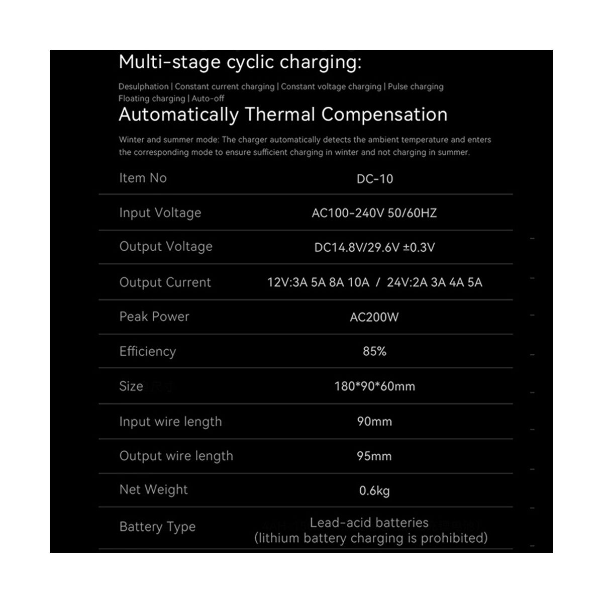 Battery type: 4AH-150AHA lead-acid battery (lithium battery charging is prohibited)