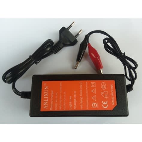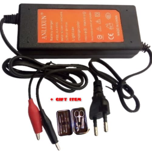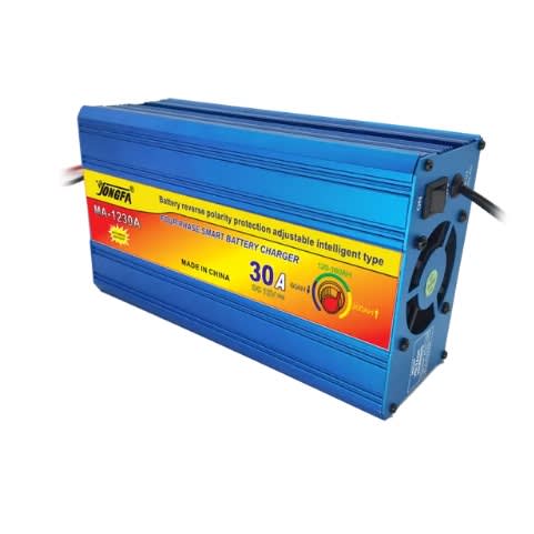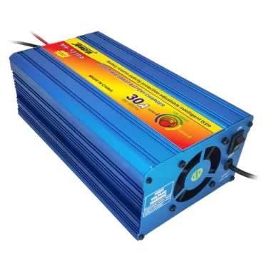 This battery charger uses micro MCU controller to manage the process of the battery charging.The charger will automatically stop charging when it is getting fully charged.This battery charger uses three-phase charging mode(PWM charging mode), which includes constant current charging phase, constant voltage charging phase, floating charging phase.With online battery detection, short circuit protection, over voltage protection, Anti - reverse connecting protection, etc.The smart charging indicator shows charging process directly, which facilitates users to manage the current of the battery.Three-phase charging modeConstant current mode:When the voltage of the battery is lower than the value set by the charger, the charger will work under the constant current mode and supply the constant current to the battery.Constant voltage mode:Using the pulse width modulation(PWM) tech to control the charging current and output voltage of the charger which ensures the battery is fully charged and avoids over charging.Floating charge mode:When the voltage of the battery is approaching the value of the constant voltage mode, and the current will cut down to the given current gradually, that means the battery power is full, then the pilot lamp will turn green and the fan will stop working. The charger will turn the mode into floating charge mode automatically. At this moment, the battery can be stopped charging or keep on floating charge for half an hour.Come with EU plug to US plug adapter converter, it is convenient for you to charge.