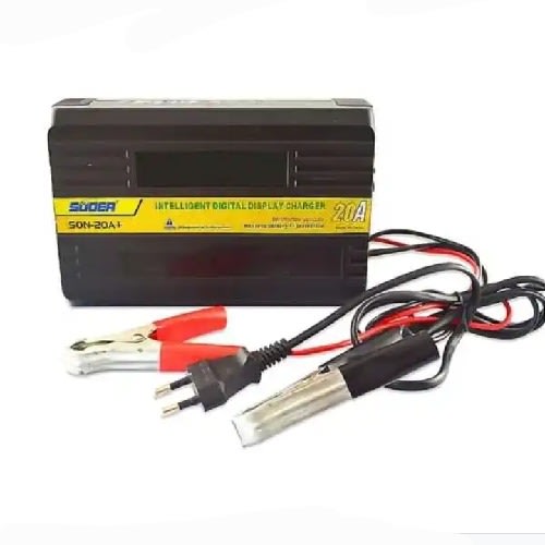12V/24V 20A smart charger with digital display is Specially Designed for Fast Cycle Charge, Deep Discharge Recovery and Long-Term Battery Maintenance of Automotive, Inverter, Leisure and Marine Batteries. This Charger Comes with Crocodile Clips supplied. The charger is having an inbuilt cooling fan in the Body to dispense the heat quickly within it. This system protects the charger against overheating. The charger also got reverse polarity protection. This Charger is best for Batteries from 40Ah to 200Ah.