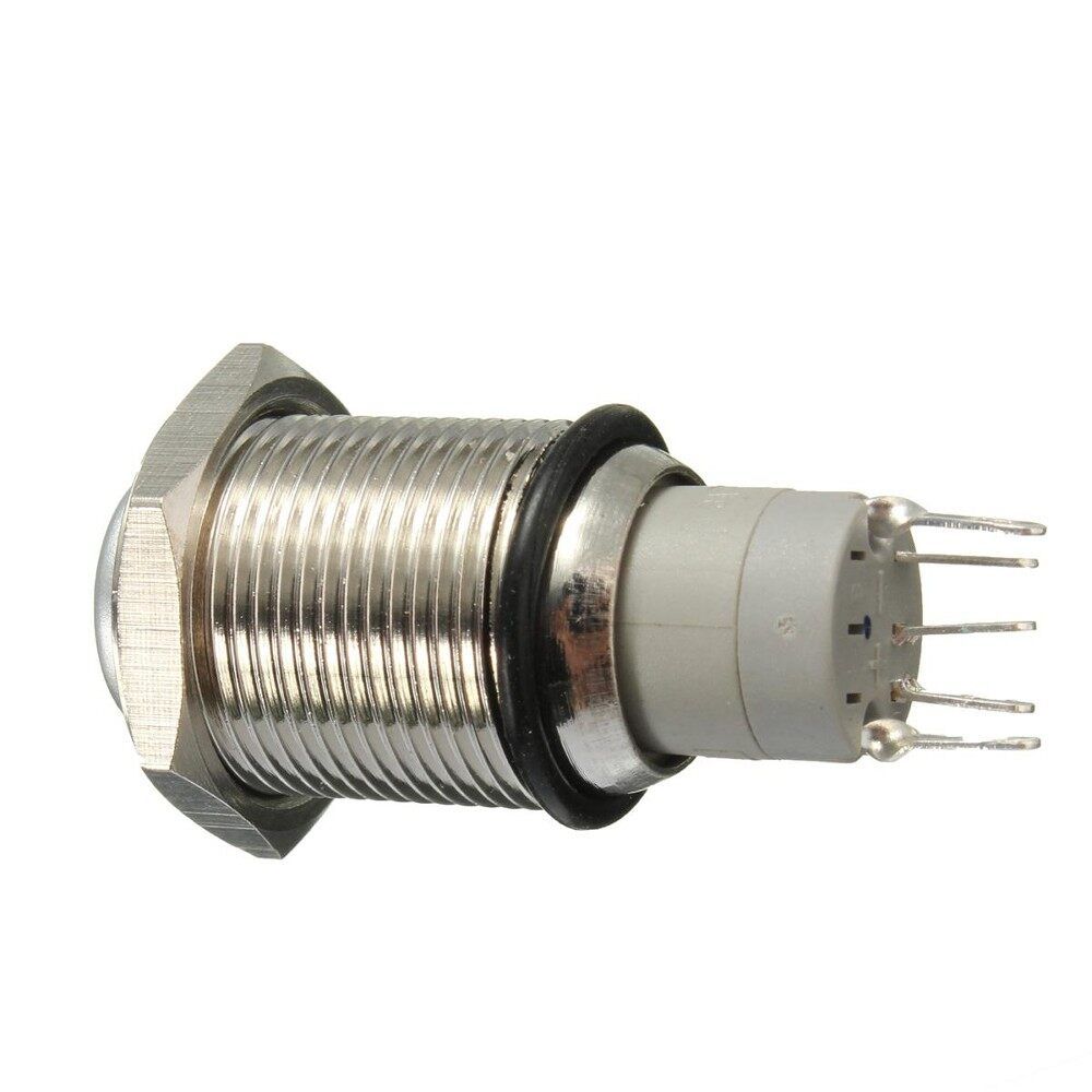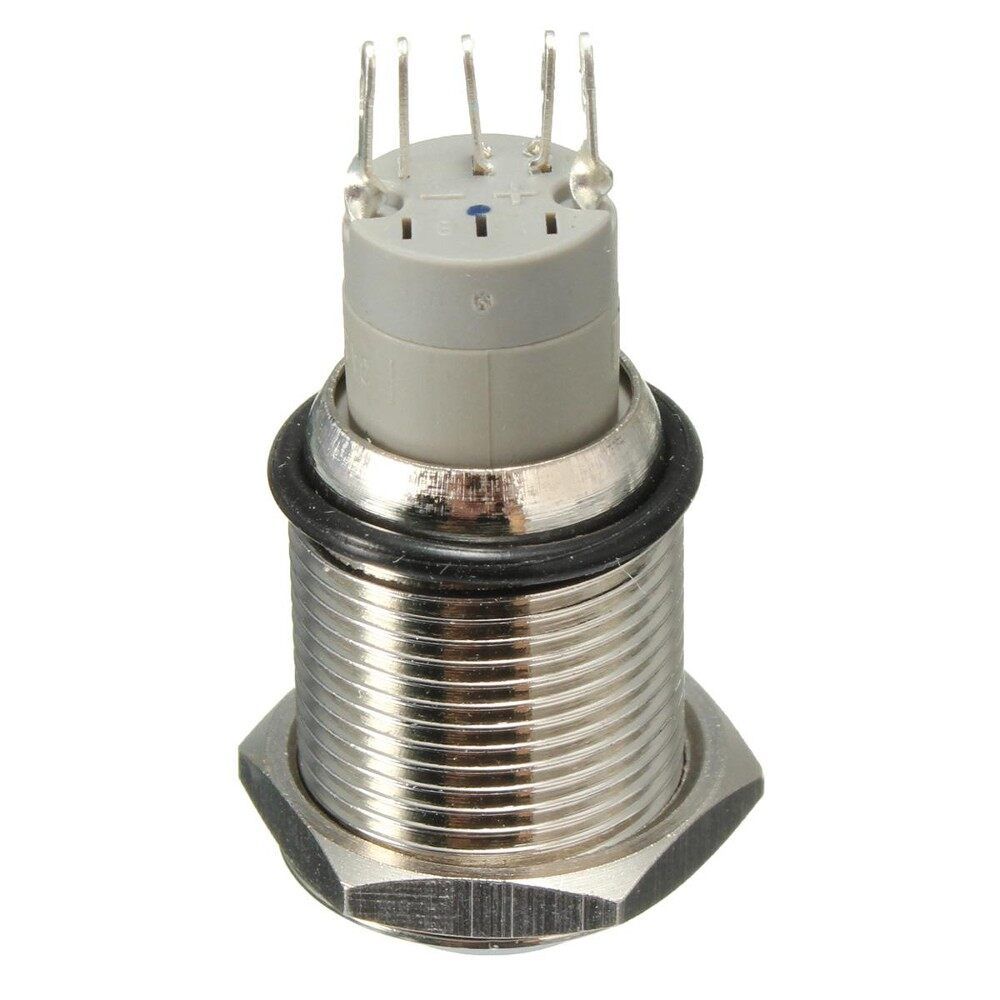 12V 16mm Waterproof Momentary Horn Metal Push Button Switch Blue LED Lighted