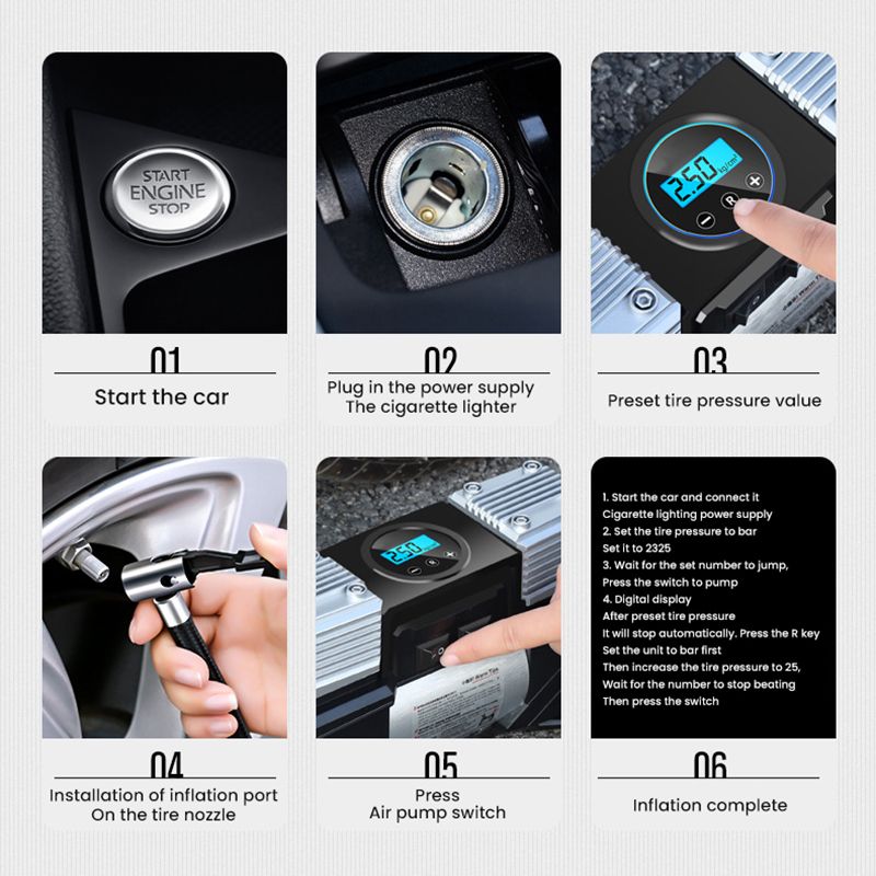 1X 12V 180W Double Cylinder High Pressure Car Air Pump Electric Digital Inflator Pump Tire Inflator Compressor Auto Tyre Air Pump