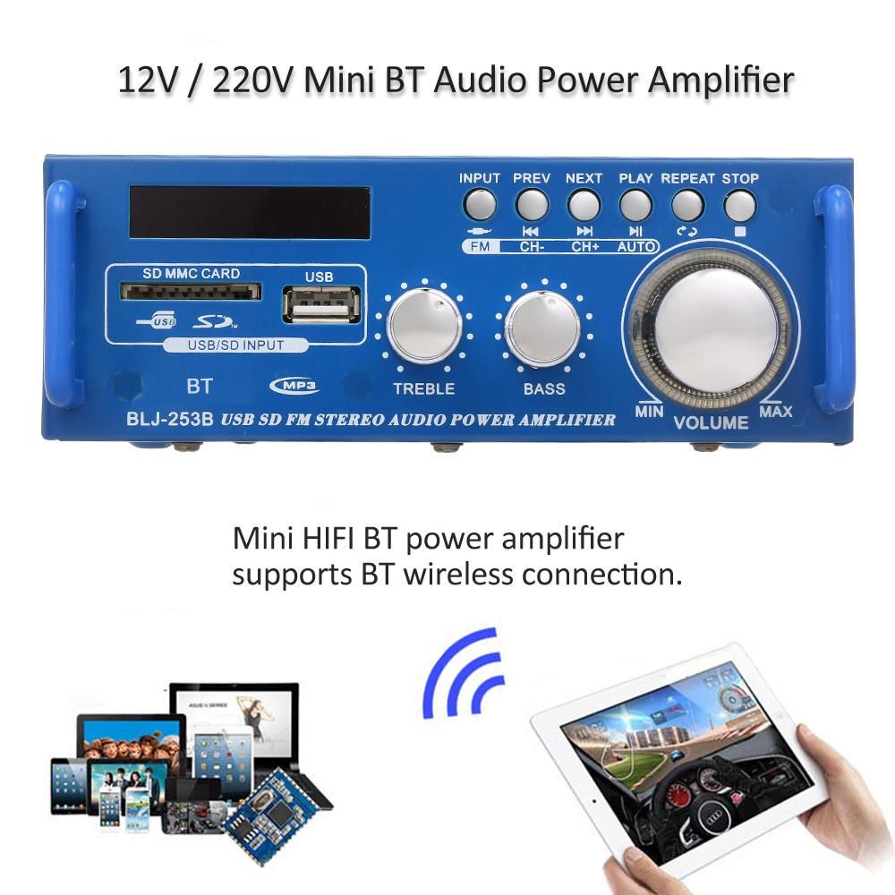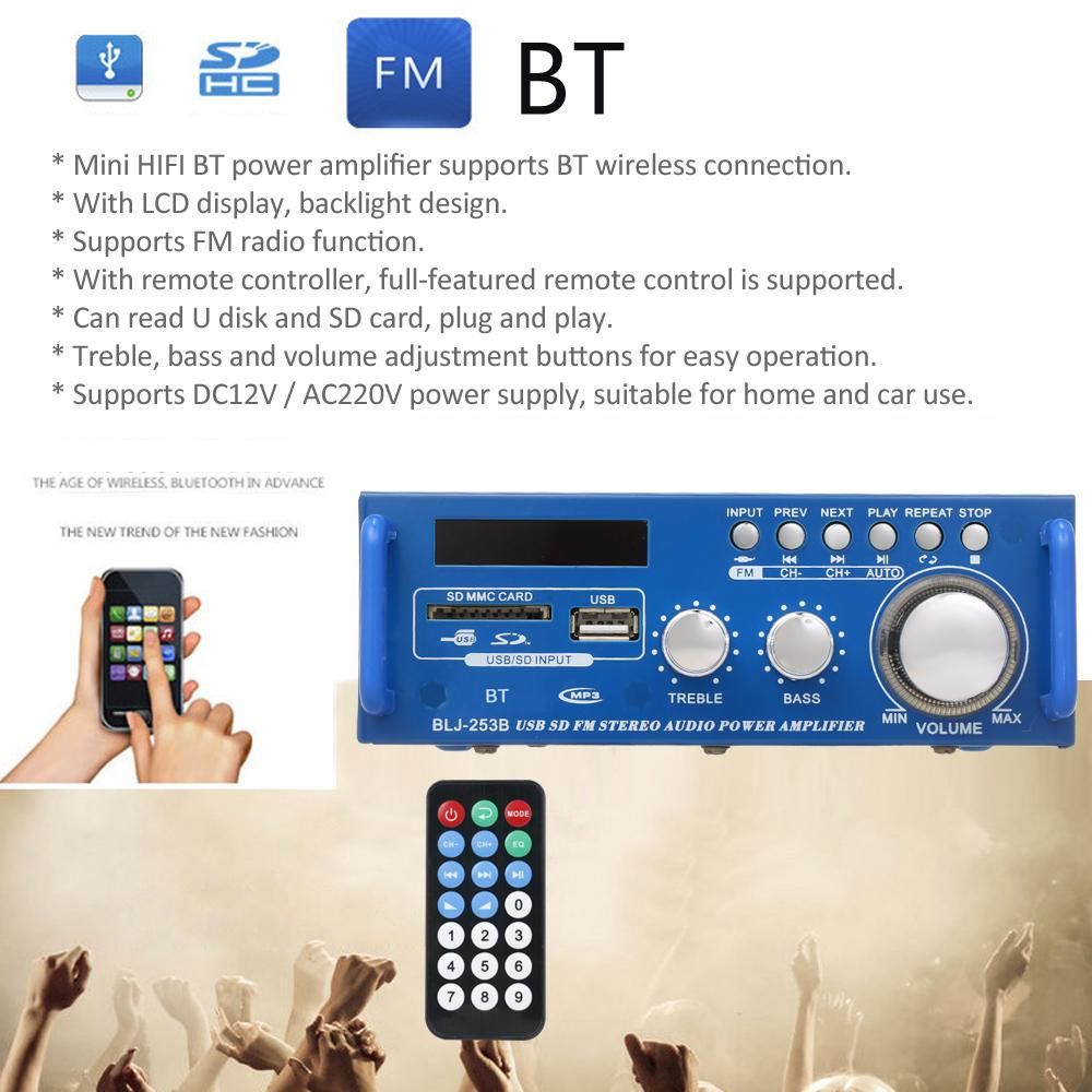 Buy 12V / 220V Mini Audio Power Amplifier BT Digital Audio Receiver AMP USB SD Slot MP3 Player FM Radio LCD Display with Remote Control Dual Channel 300W+300W for Car Home Use in Nigeria