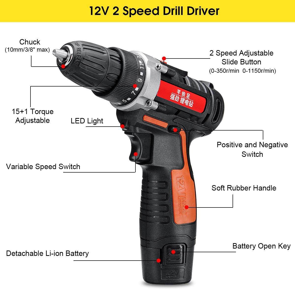 * 2 Adjustable Speed Reversible: This drill features a 2-speed setting, delivers optimal performance. with trigger that allows to control your own drilling speed which perfects for what you are setting up for. A extra press switch allows you to either forward or reversely based on your purposes.