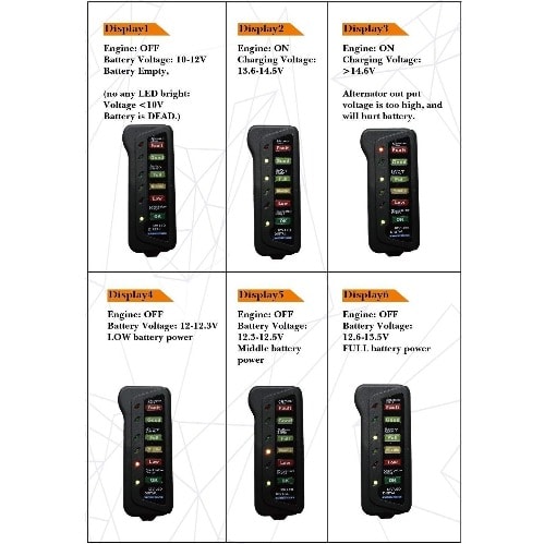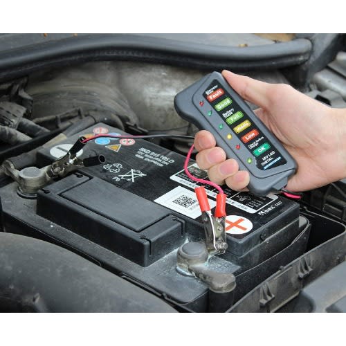 Tests both the battery and charging systems with digital accuracy and works on 24 volt batteriesMicroprocessor control for easy and accurate load test with no more need to time yourselfBright, 3-color, LCD digital display indicates both voltage and test results.6-step design indicates pass, pass and recharge, recharge and retest, fail, bad cell and 1 LED indicates "Check Clamp"Checks both battery and charging system