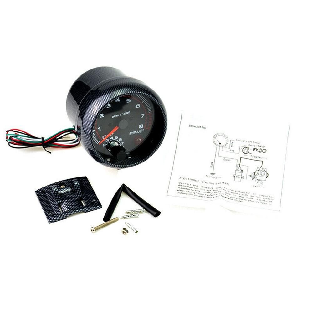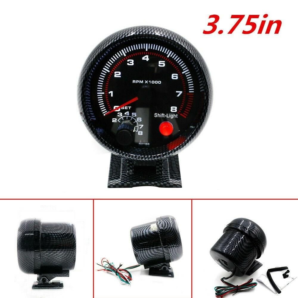 Buy 12V Car Carbon Fiber 3.75" Tachometer Tacho Gauge with 7 LED Colors Shift Light 0-8000 RPM in Nigeria