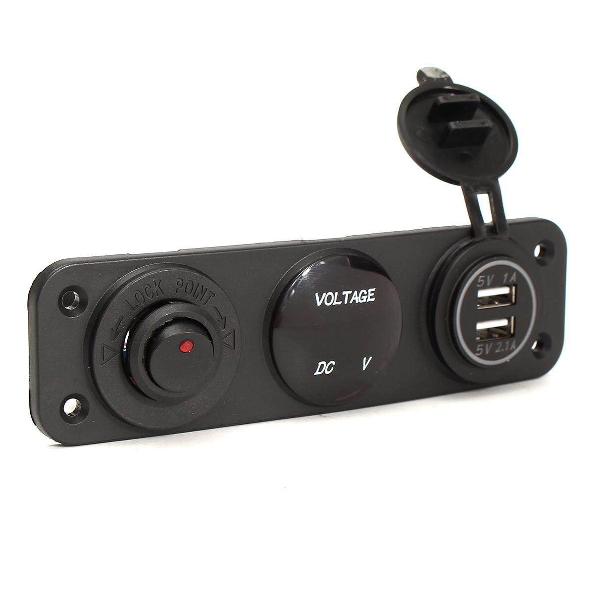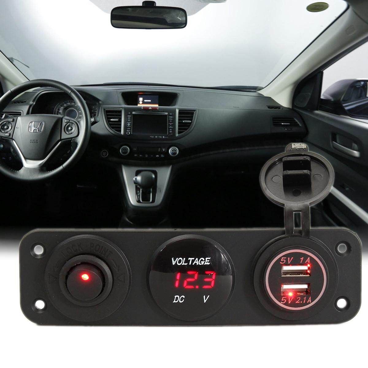 1x DC12-24V Car Charger Dual USB Port + LED Digital Display Voltmeter + Switch 4x Screws 6x Insulated Terminals