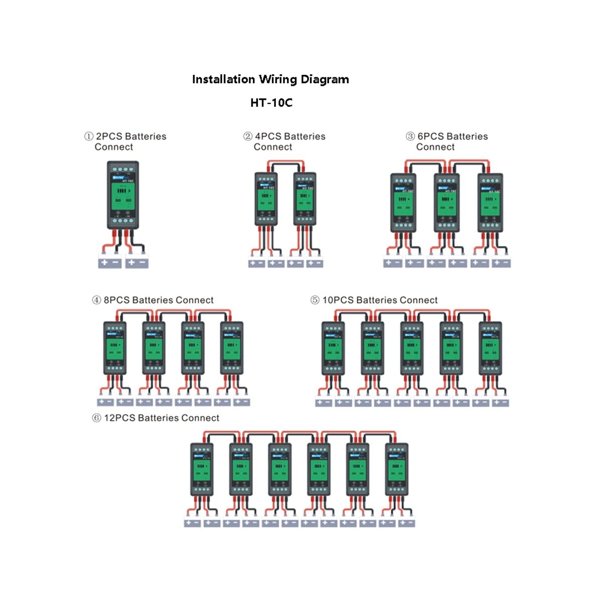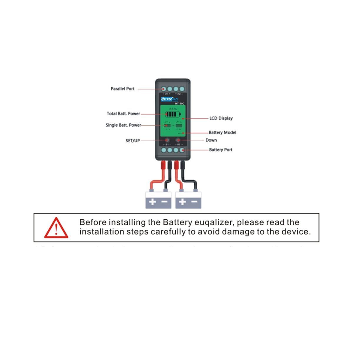 connecting the battery equalizer, confirm the positive andnegative poles of each battery to avoid short circuit and reverse connectionbetween the battery equalizer terminals.