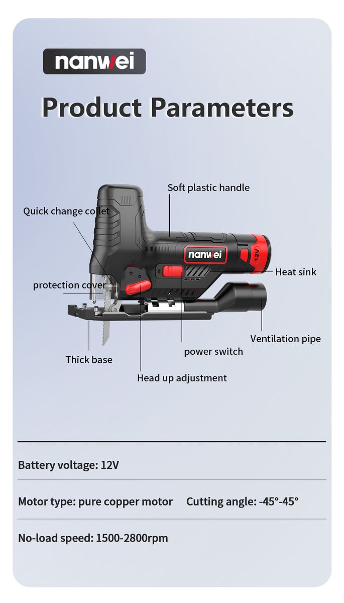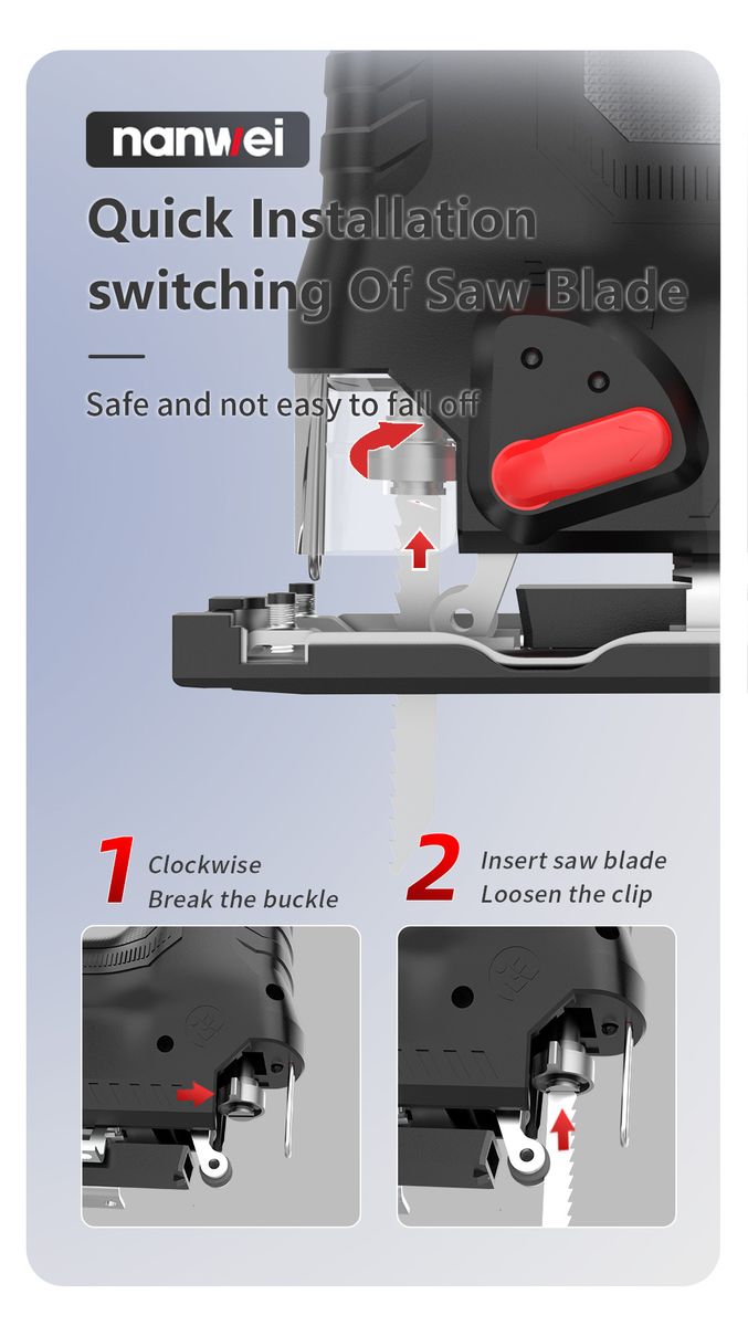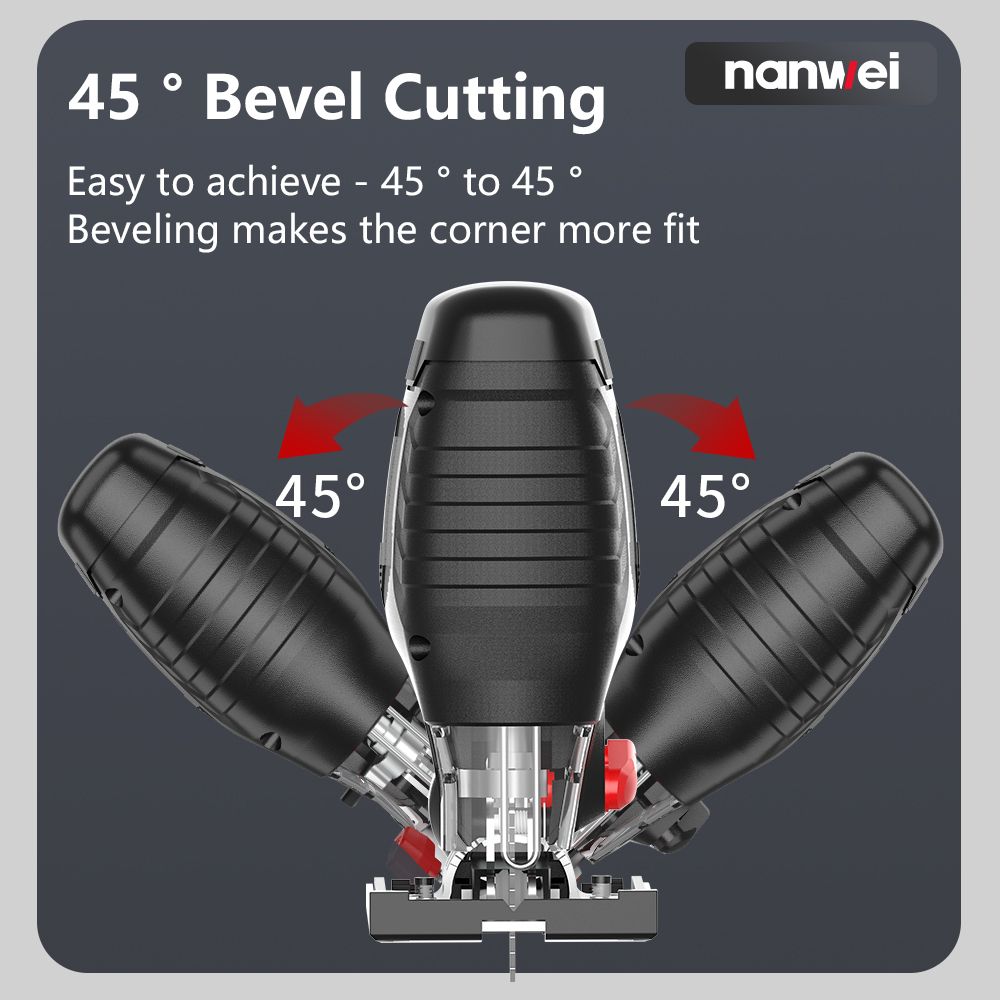 Jig Saw angle adjustment: supports 45 degree oblique cutting