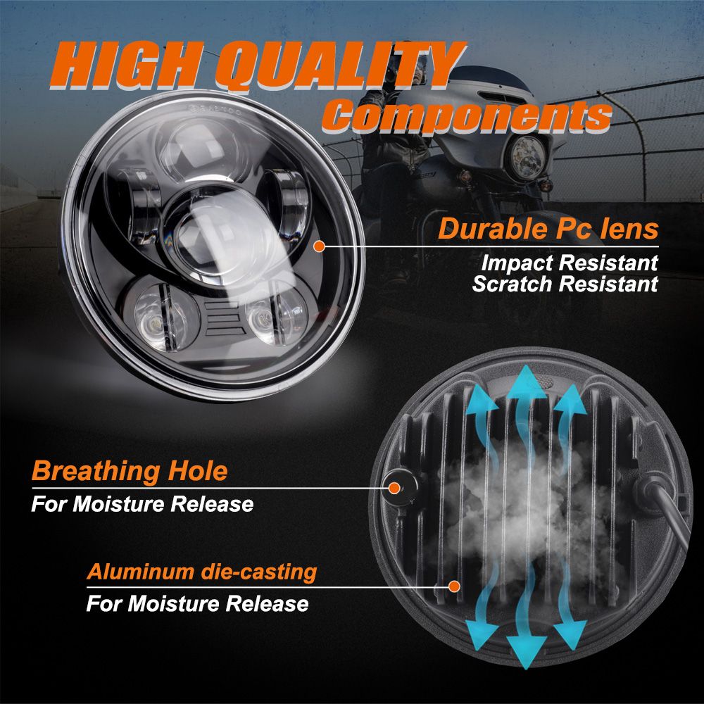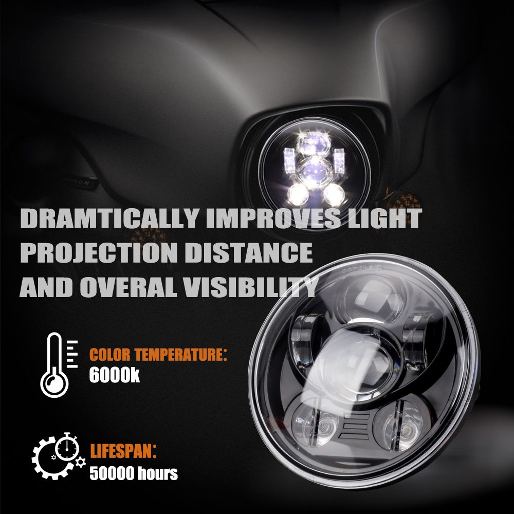 LED Head Lamp, perfectly fits for most of 5.75 inches motorcycles.