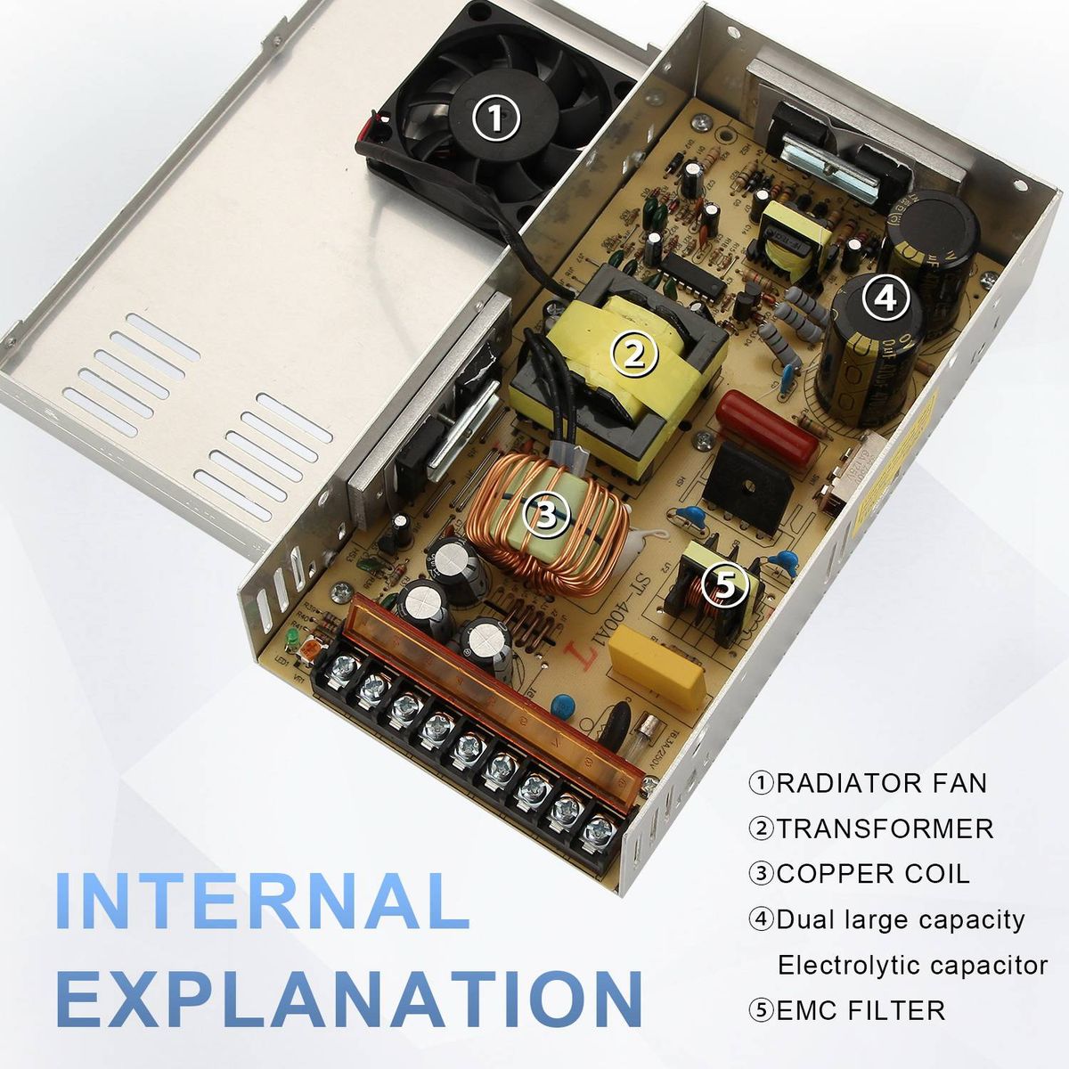 Please calculate the load power accurately and do not overload. Do not Press the case when the power supply is working.