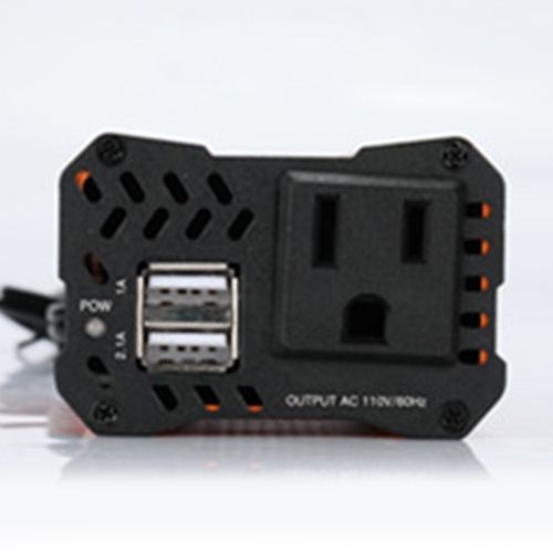 Premium 150W car power inverter with 2 USB ports and AC outlets.