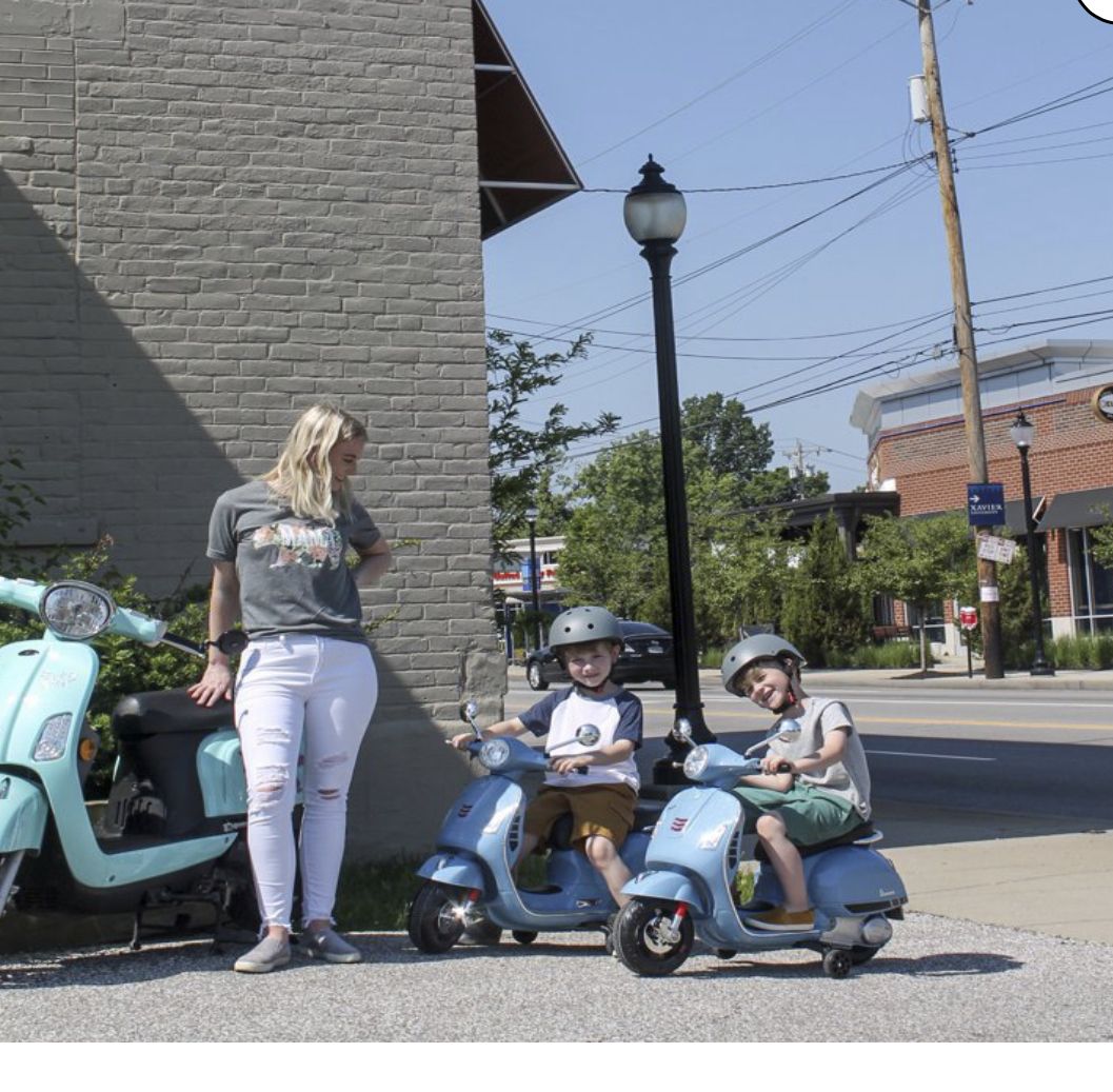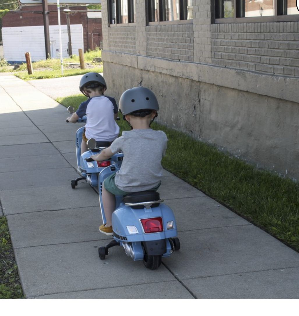 Your Little Driver Can Zoom Around on this Light Blue 12V Vespa GTS Super Sport. Battery Operated Ride On. When Powering on, your youngster can hear the Engine start up. Drives in both Forward and Reverse.