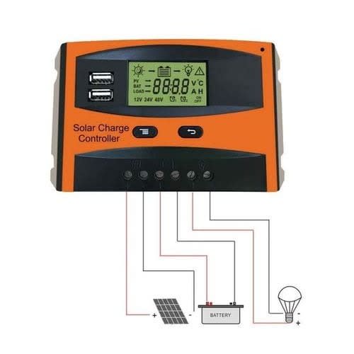 PWM Solar Charger Controller - 100AmpsInput Voltage 12/24/36V/48VVisual LCD graphic symbolBrief key operationGrade auto switch of system voltageIntelligent PWM Charging ModeAuto temperature compensationAdjustable charging & discharging parameterSettable working modes of loadsAccumulative function of charging & dischargingProtection for battery back dischargingLow Voltage Protection12V at 10.5v24V at 21.4v36v at 32.10v48v at 42.80v