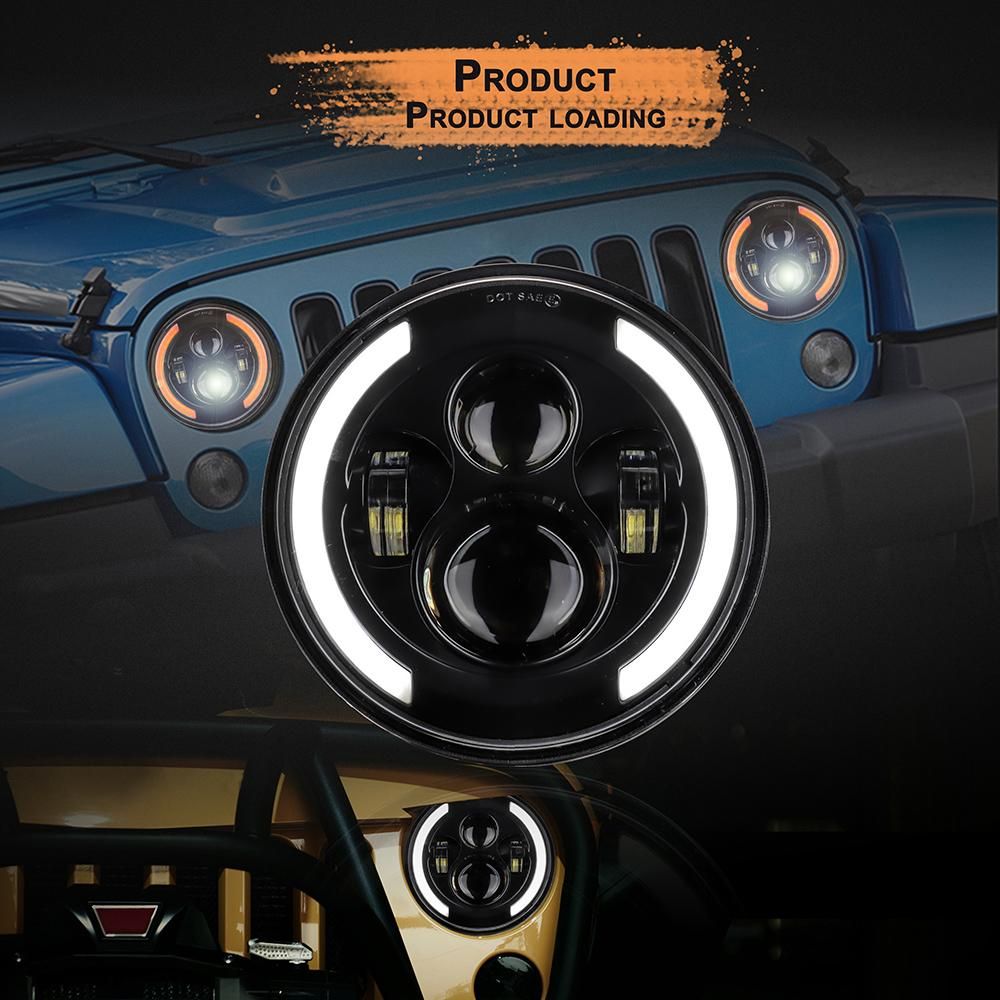 Buy 12V/24V Motorcycle Car Headlight 7 inches Round LED Driving Lamp Head Lamp Fit for 7 inches Jeep Wrangler, Retro Turn Signal in Nigeria