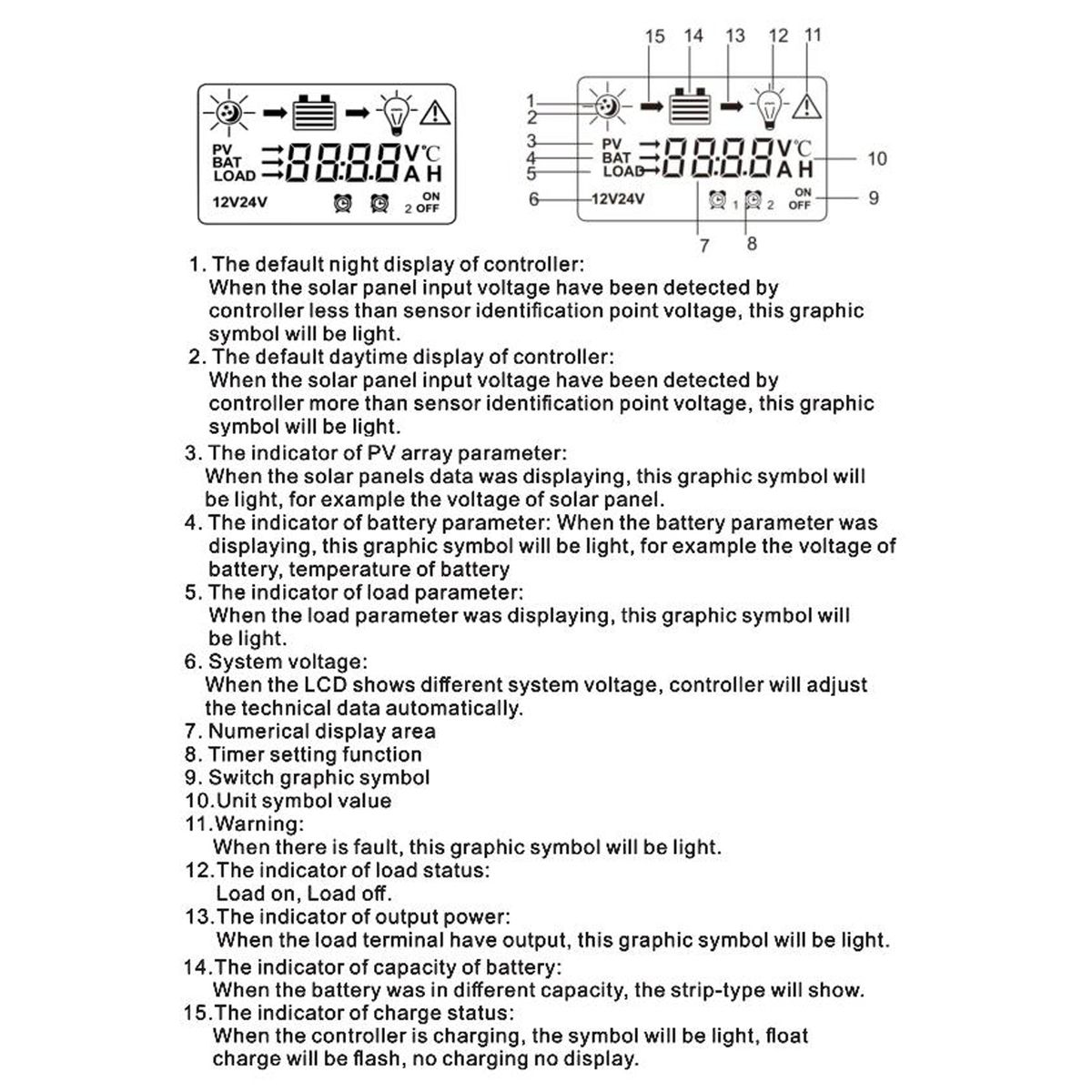 12Volt/24Volt Automatic Voltage Solar Controller Solar Panel Regulator LCD Display Solar Controller with Backlight Multiple Load Control Modes Solar Controller
