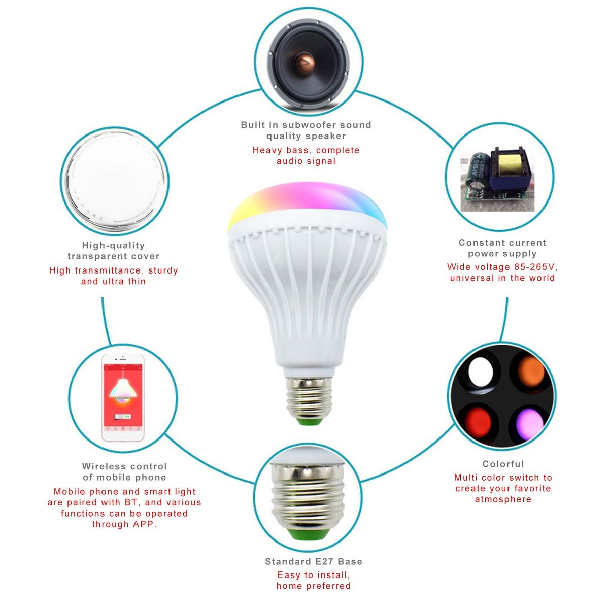 The smart music Led bulb not only can be used as a LED light bulbs, but also can be used as a speaker. The powerful dynamic driver deliver fantastic sound with deep bass for a wonderful listening experience.