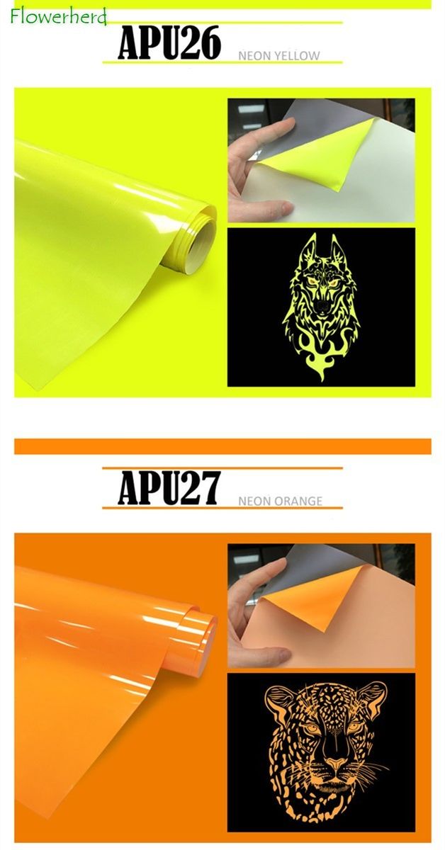1X 12x12inch Fluorescence PU Heat Transfer Vinyl Lettering Film Hot Stamping HTV Rolls Bundle Cricut Silhouette Cameo DIY T Shirt