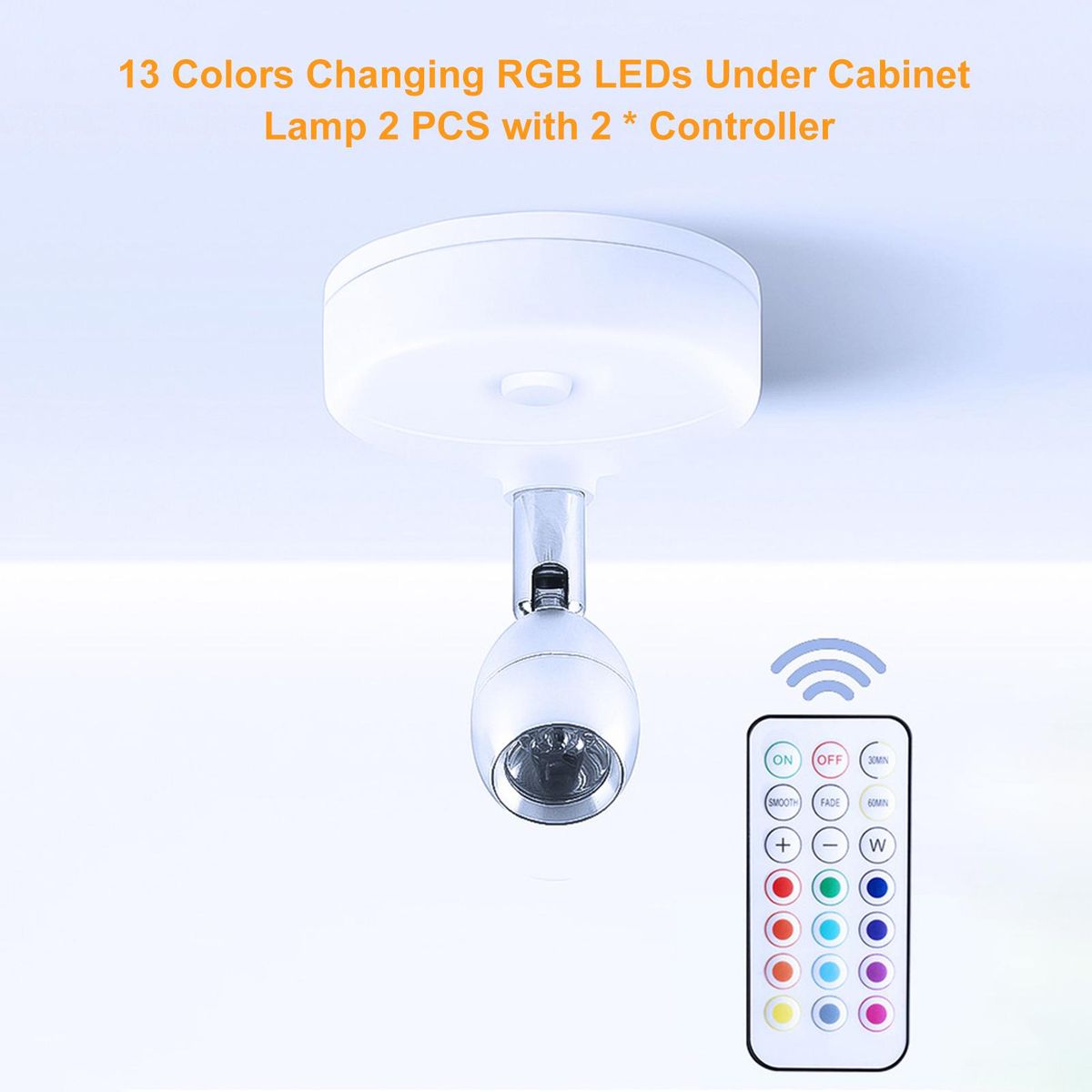 Buy 13 Colors Changing RGB LEDs Under Cabinet Lamp 2 PCS with 2 * Controller Brightness Adjustable Dimmable 30/60Mins Timing Supported 13 Colors Changing/ Smooth/ Fade 2 Lighting Modes 3* AA Operated Powered for Cloakroom Cupboard Wardrobe Kitchen in Nigeria