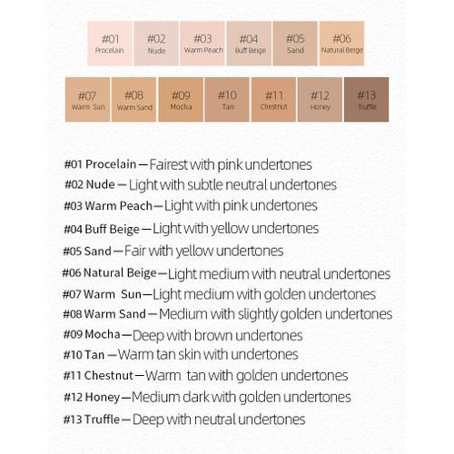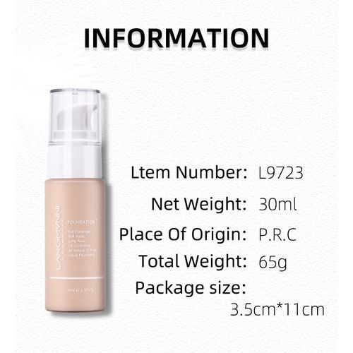 /Product Description:Product Category: Liquid FoundationSkin Type: GeneralWhether it is sunscreen: YesSpecifications: normal specificationsColor: 13 colorsSpecial purpose cosmetics: NoItem No.: L9723Efficacy: ConcealerShelf life: 3 yearsNet content: #1/