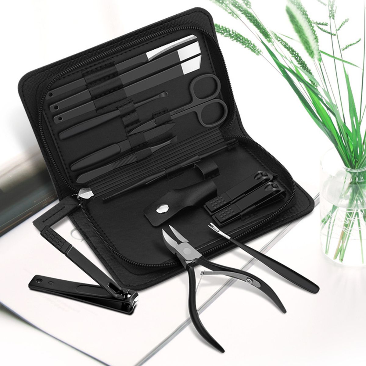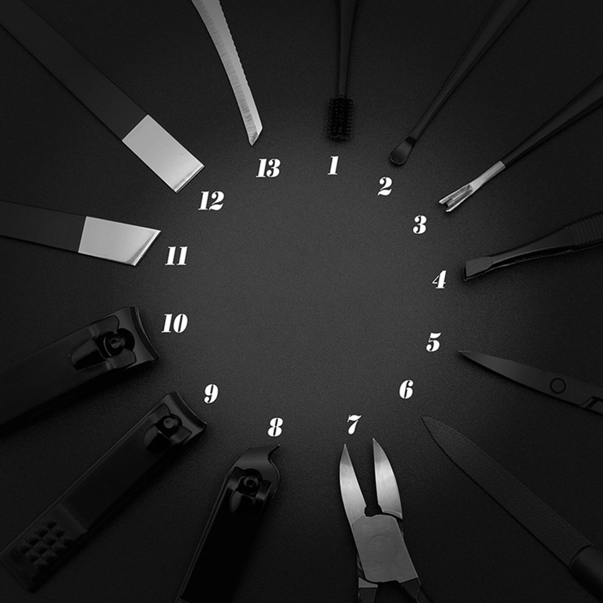 A set of 13 different tools for face care and foot care are included.