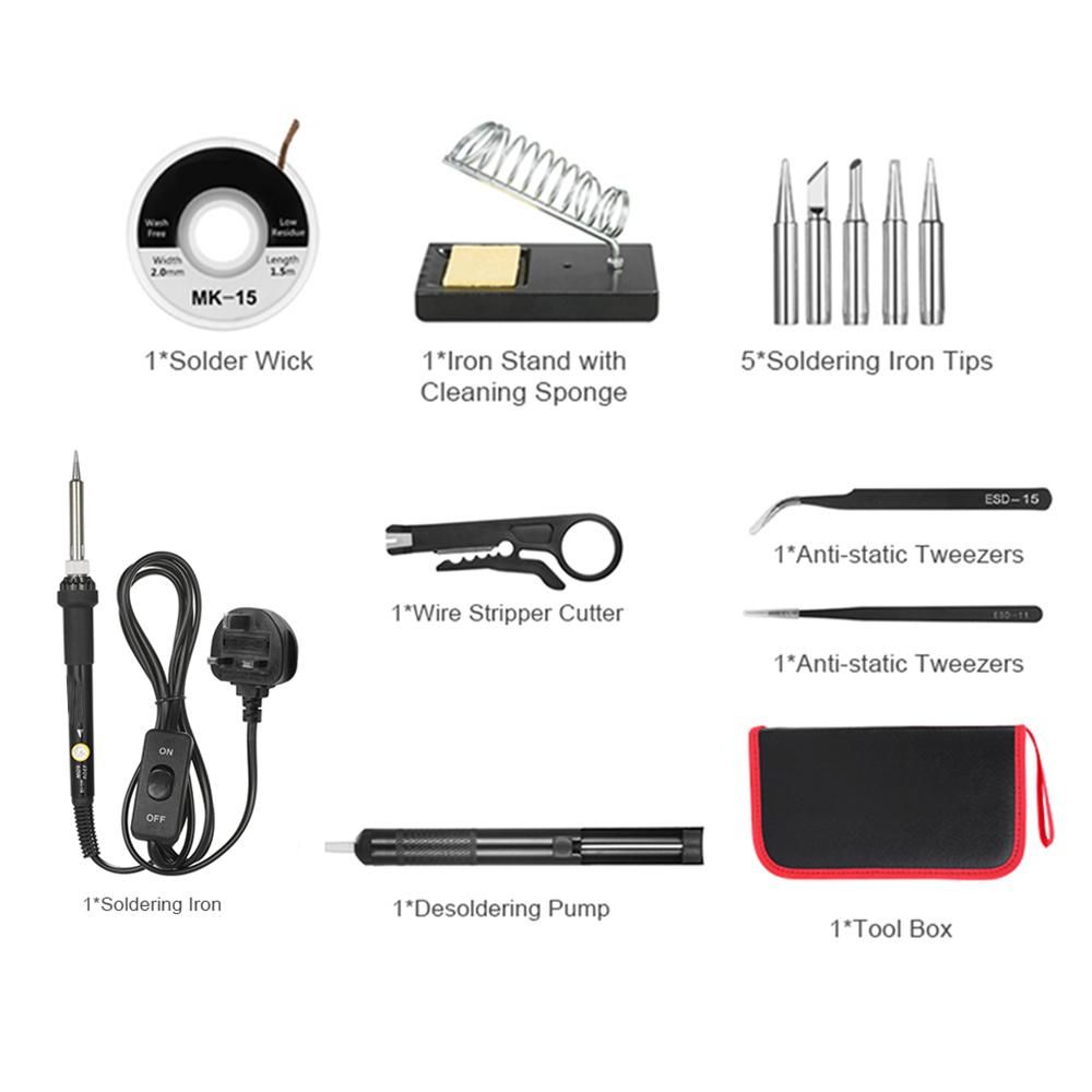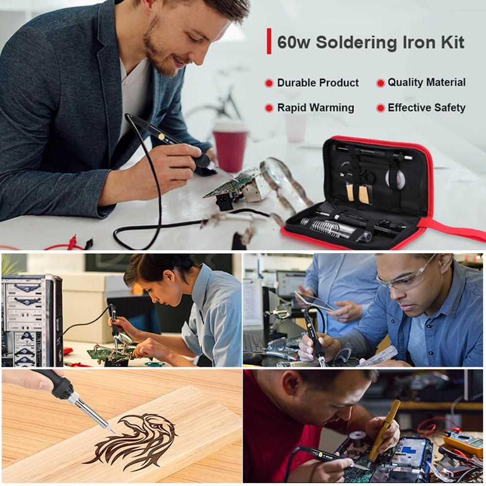 Buy 13 in 1 Soldering Iron Kit 60W Adjustable Temperature Welding Soldering Iron with ON/OFF Switch 5pcs Soldering Tips Solder Sucker Desoldering Wick Anti-static Tweezers Iron Stand with Cleaning Sponge Zipper Tool Pouch Organizer in Nigeria