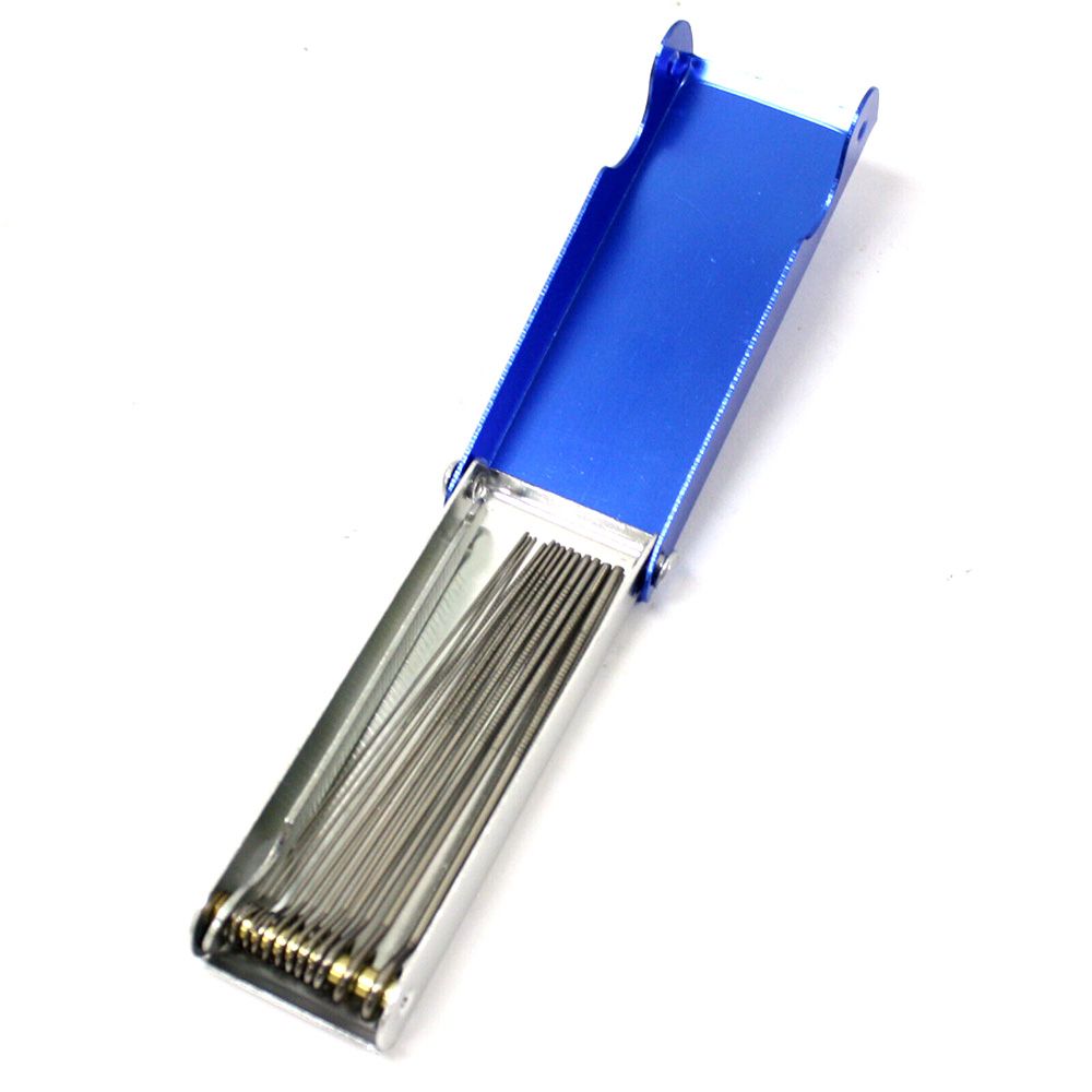 The nozzle tip cleaner includes 13 stainless steel reamers ( Sizes: 6 To 26 ) and one file, used for welding nozzle cleaning.