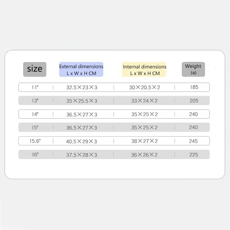 Size: External dimensions 35 x 25.5 x 3 cm ;Internal dimensions 33 x 24 x 2 cm. This laptop sleeve fits up to 13 inches item like tablet, laptop, ultrabook,books etc.