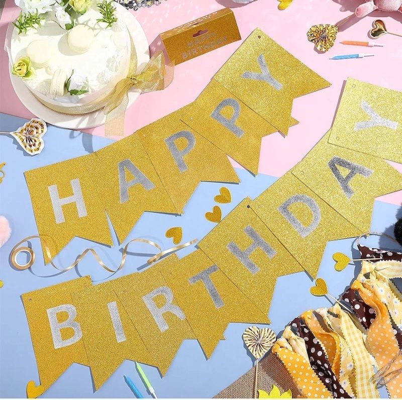 MATERIAL: High quality card paper, super shiny gold letters and thick enough, not easily bent, you can reuse it for next party